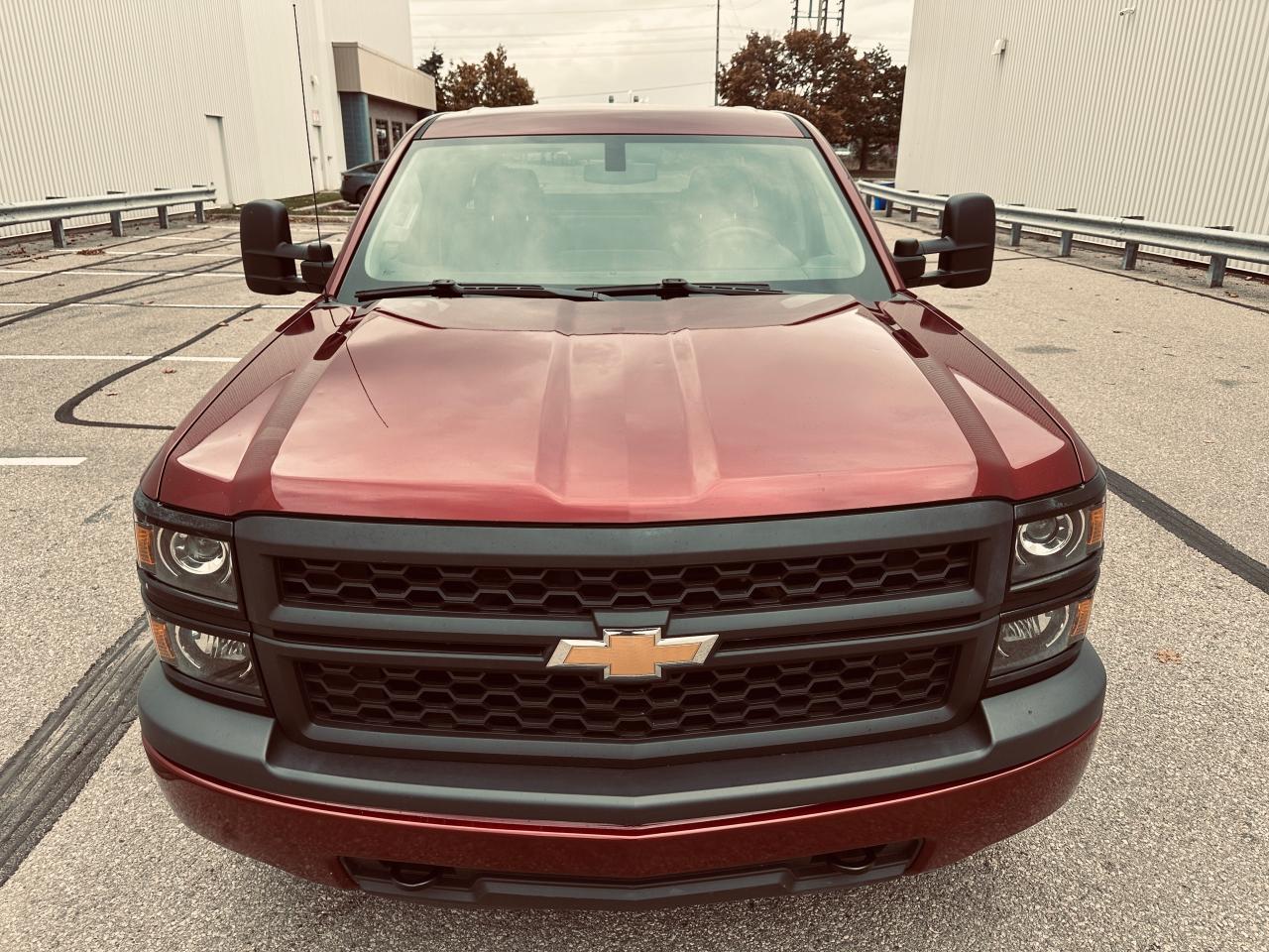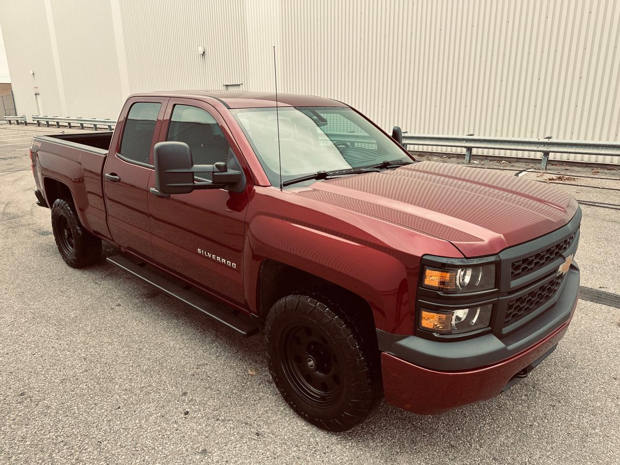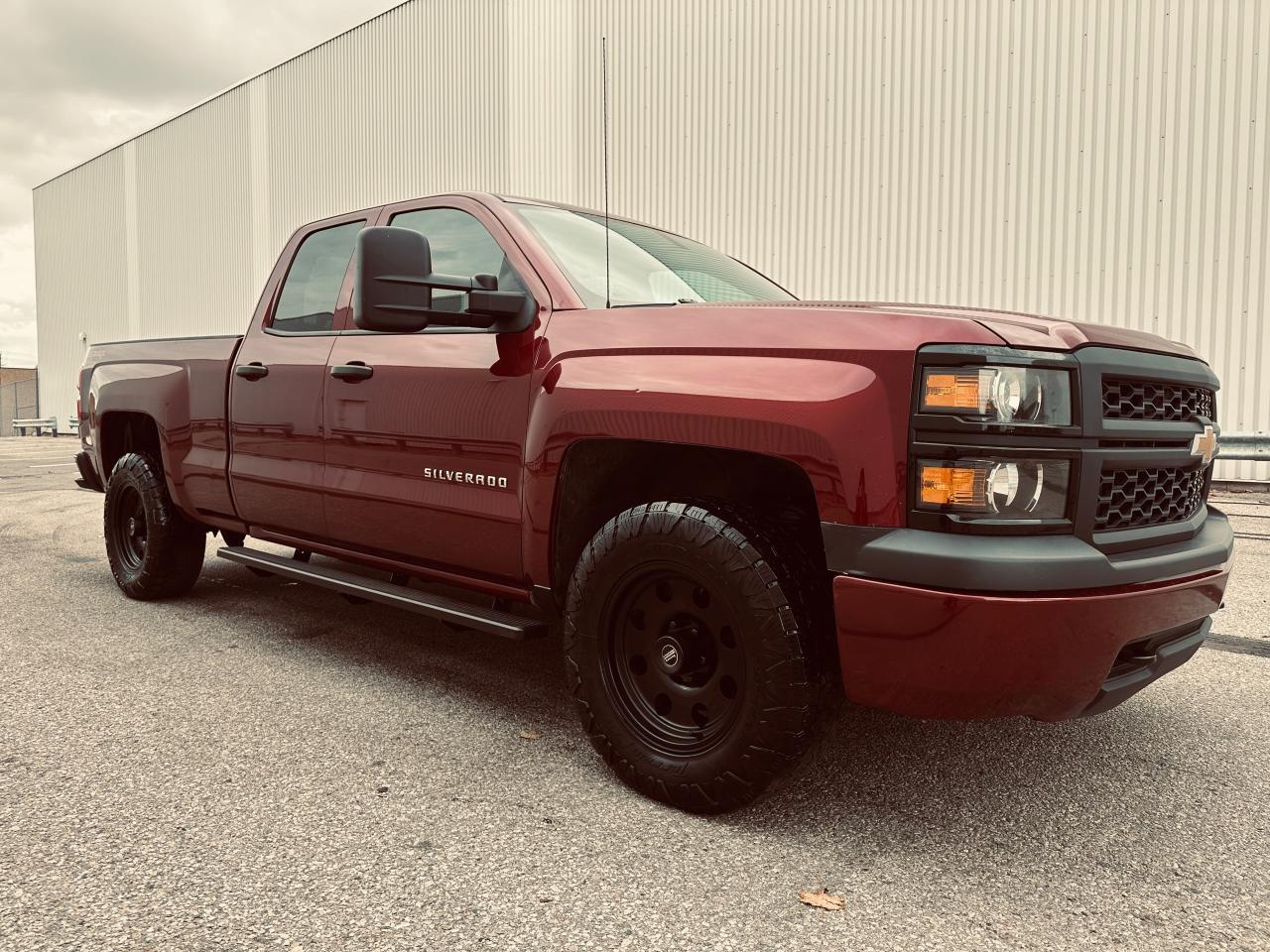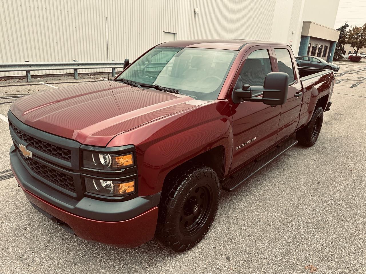 2014 Chevrolet Silverado 1500 Double Cab 4×4 | 5.3L V8 | 6.5-ft Box — exceptionally clean, low-km, personal-use truck with no accidents reported on CARFAX. Certified and professionally reconditioned—ready for the next owner. OPTIONS: 4WD, 5.3L EcoTec3 V8, 6.5-ft bed, trailer hitch/tow package, running boards, bed liner, high-end alloy wheels, Towing Mirrors, aggressive tires, power windows/locks, cruise control, A/C, keyless entry (where equipped). Exterior: Metallic Maroon. Interior: Ash. Included: fresh service and multi-point inspection through our service department. CARFAX history report verified.