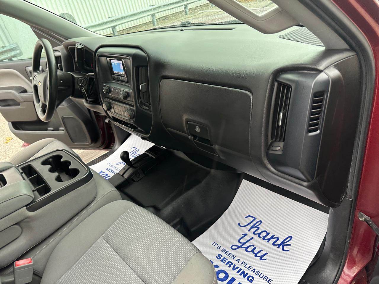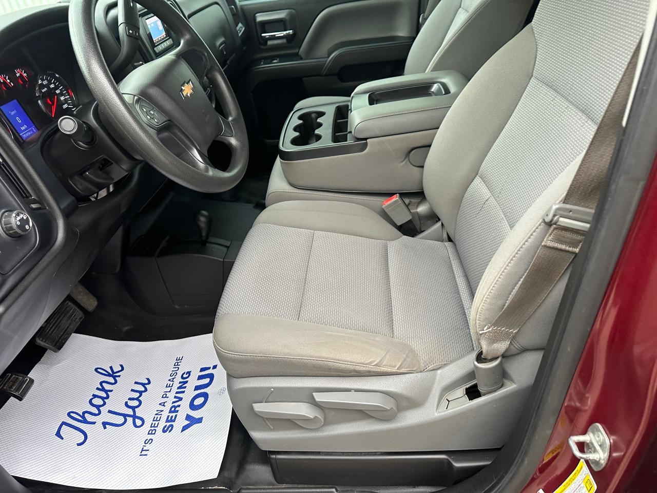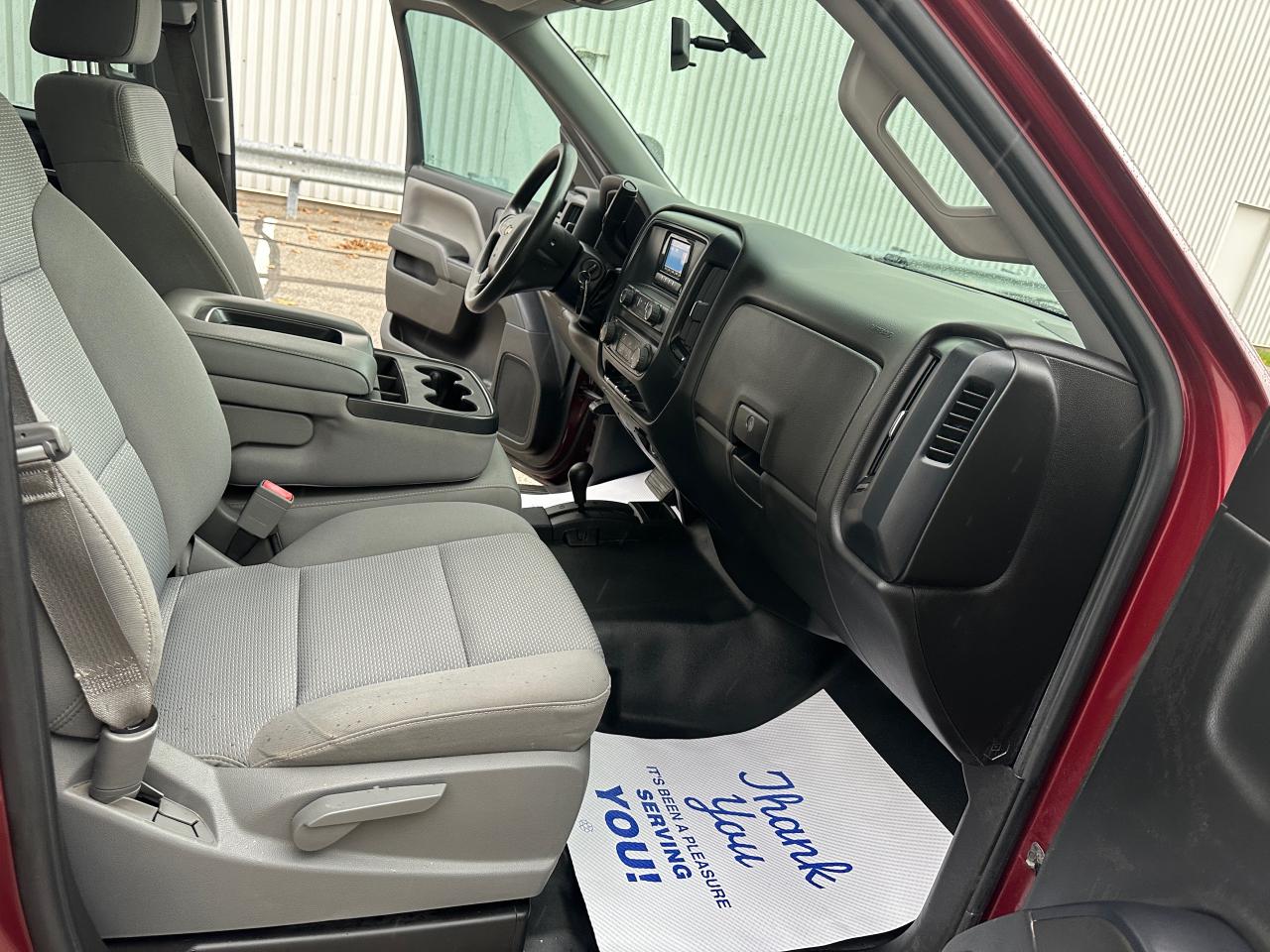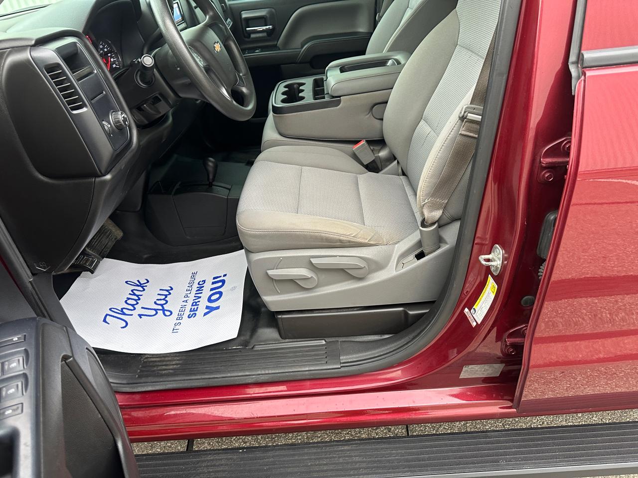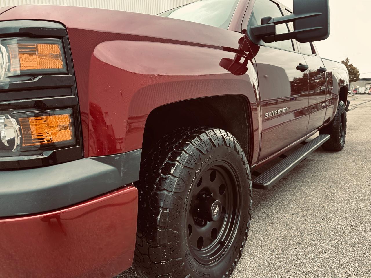2014 Chevrolet Silverado 1500 Double Cab 4×4 | 5.3L V8 | 6.5-ft Box — exceptionally clean, low-km, personal-use truck with no accidents reported on CARFAX. Certified and professionally reconditioned—ready for the next owner. OPTIONS: 4WD, 5.3L EcoTec3 V8, 6.5-ft bed, trailer hitch/tow package, running boards, bed liner, high-end alloy wheels, Towing Mirrors, aggressive tires, power windows/locks, cruise control, A/C, keyless entry (where equipped). Exterior: Metallic Maroon. Interior: Ash. Included: fresh service and multi-point inspection through our service department. CARFAX history report verified.