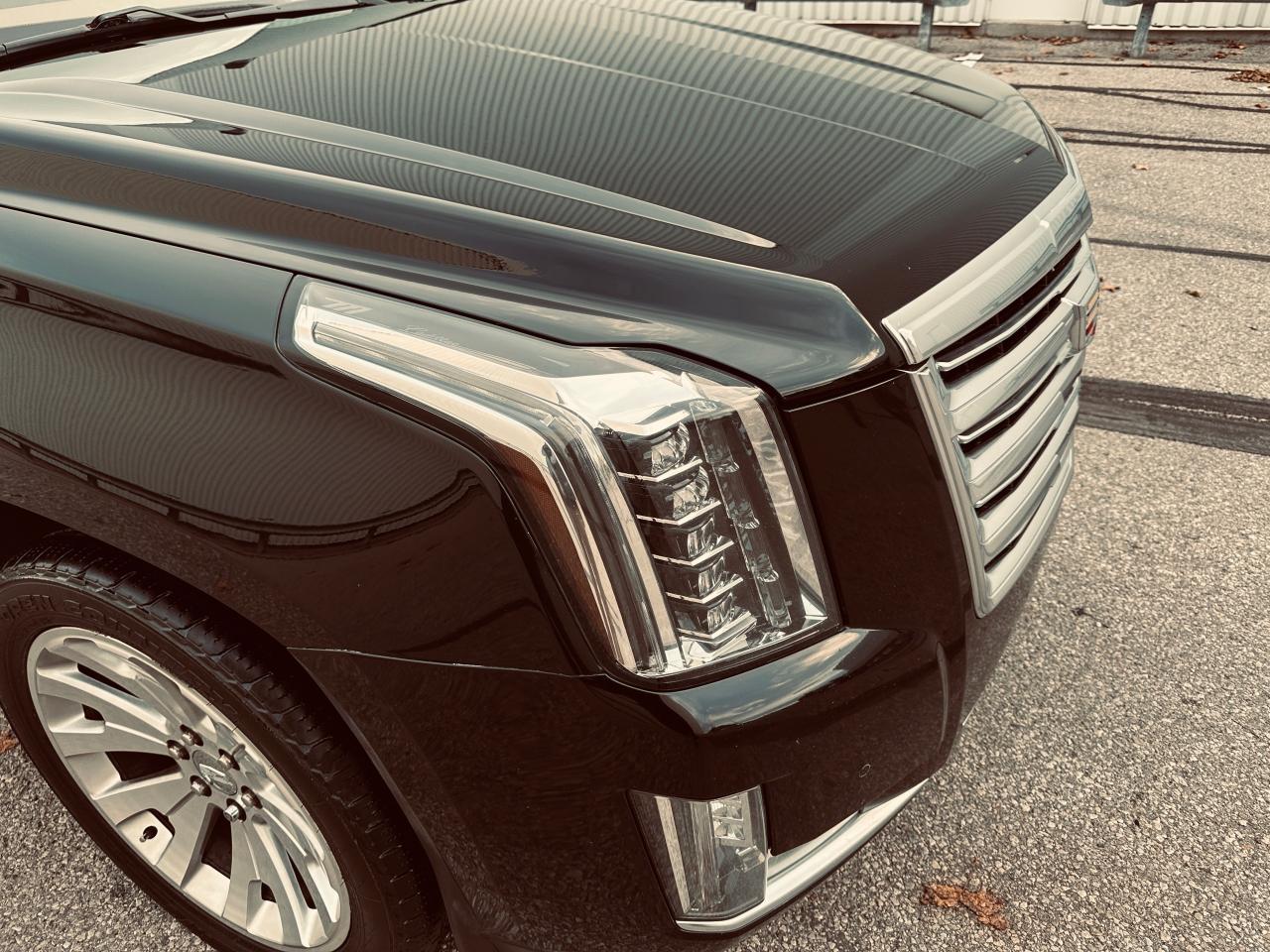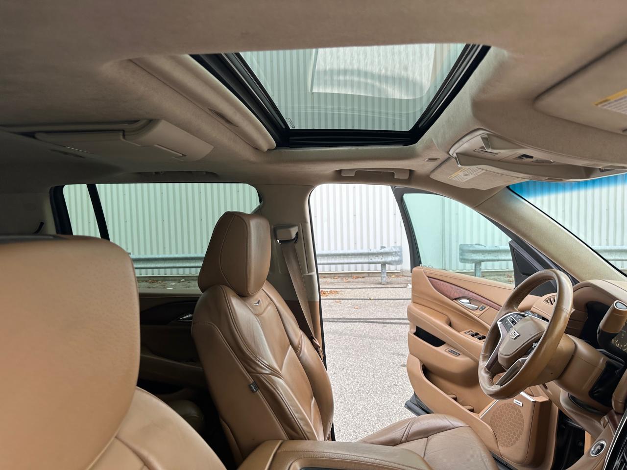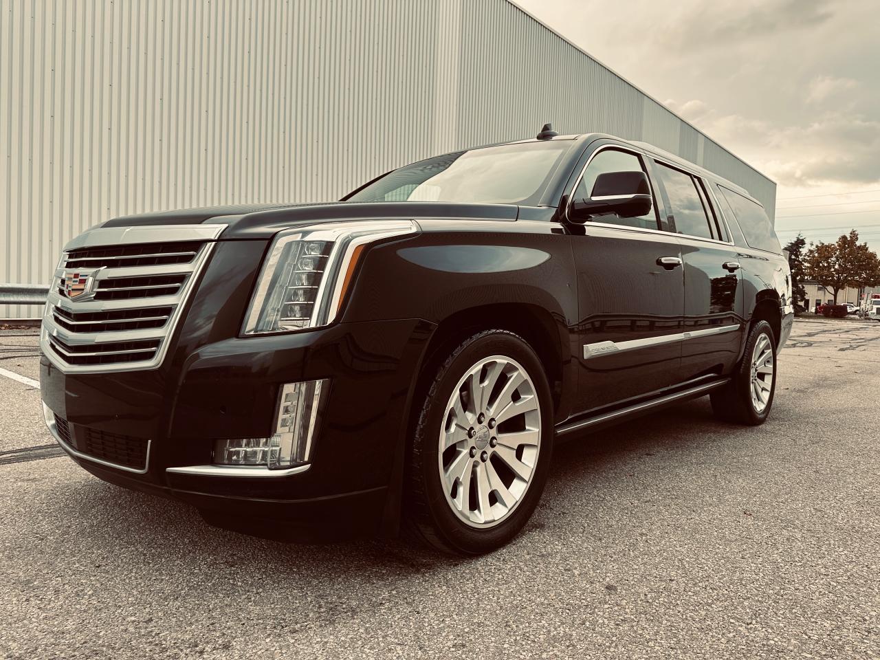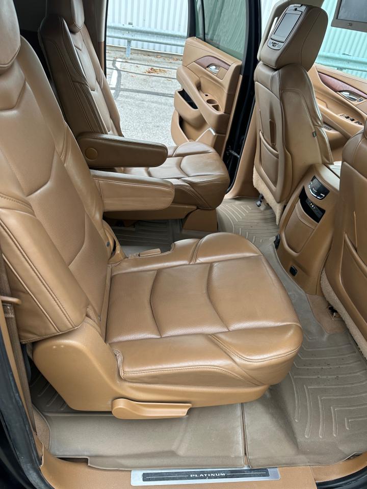 2015 Cadillac Escalade ESV Platinum — Rare spec, class-leading design, low kms. Crystal Black Metallic over orange (Kona Brown-style) leather. No accidents or damage reported according to the verified CARFAX history report. Fully equipped and in outstanding shape and condition—luxury and performance in one. OPTIONS/FEATURES: 6.2L V8, 4×4/AWD, Platinum-grade interior trim, premium leather with heated/ventilated front seats, heated 2nd-row captain’s chairs, power-folding 3rd row (7-passenger), CUE navigation with large touchscreen, Bose premium audio, Bluetooth/USB, rearview camera with front/rear parking sensors, head-up display, power sunroof, tri-zone climate control, adaptive/auto-leveling suspension,DVD including front headrest and headliner screens, lane-change/blind-spot alerts & forward collision alert (where equipped), keyless entry with push-button start & remote start, hands-free power liftgate, power-adjustable pedals & memory seats, power-retractable running boards (where equipped), 22-inch alloy wheels, LED/HID lighting, and rear entertainment package (where equipped). Certified and professionally reconditioned—ready for its next owner.