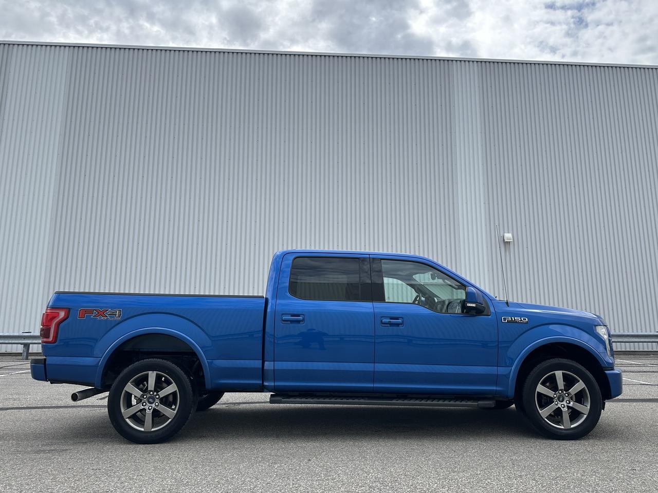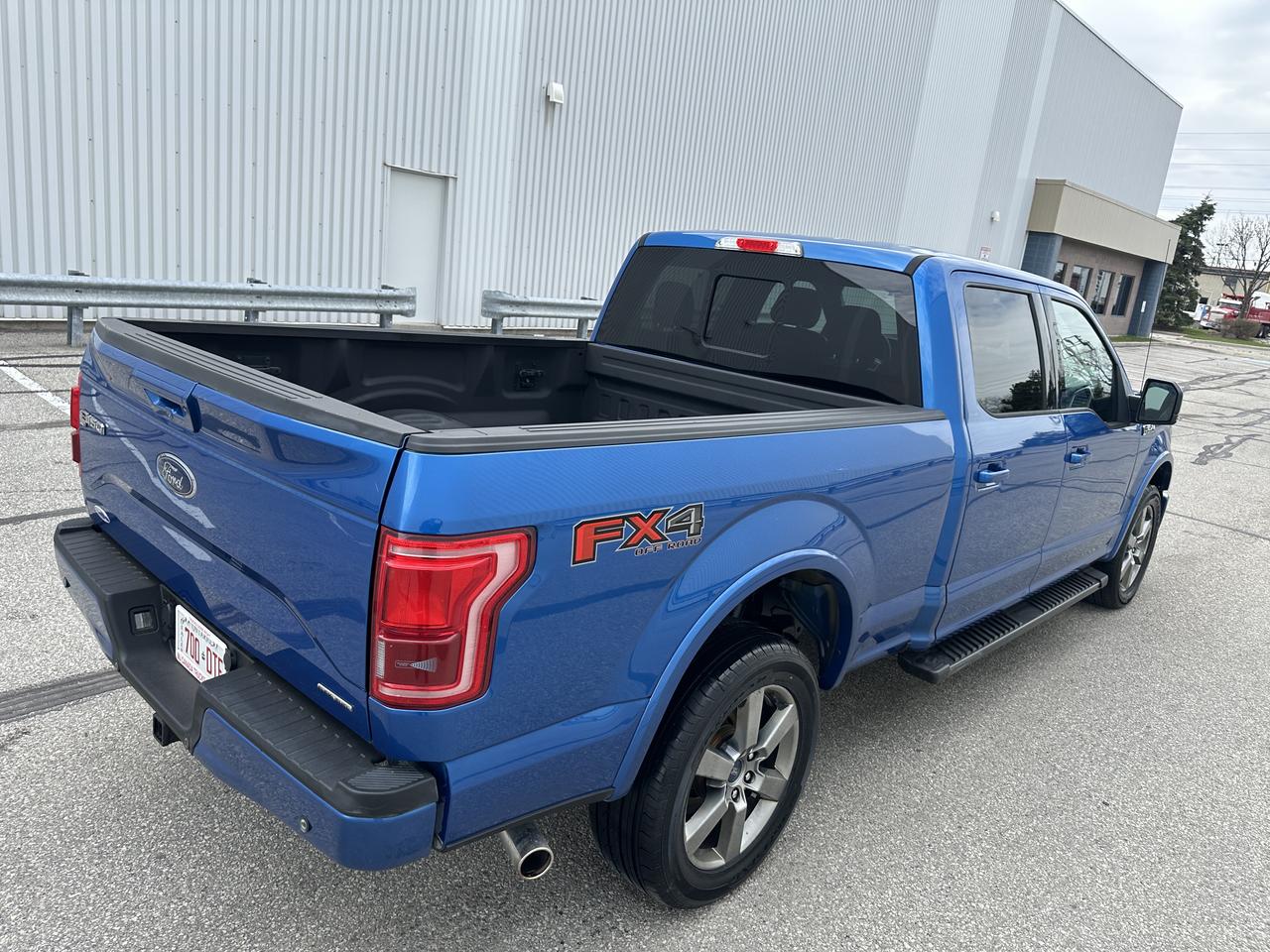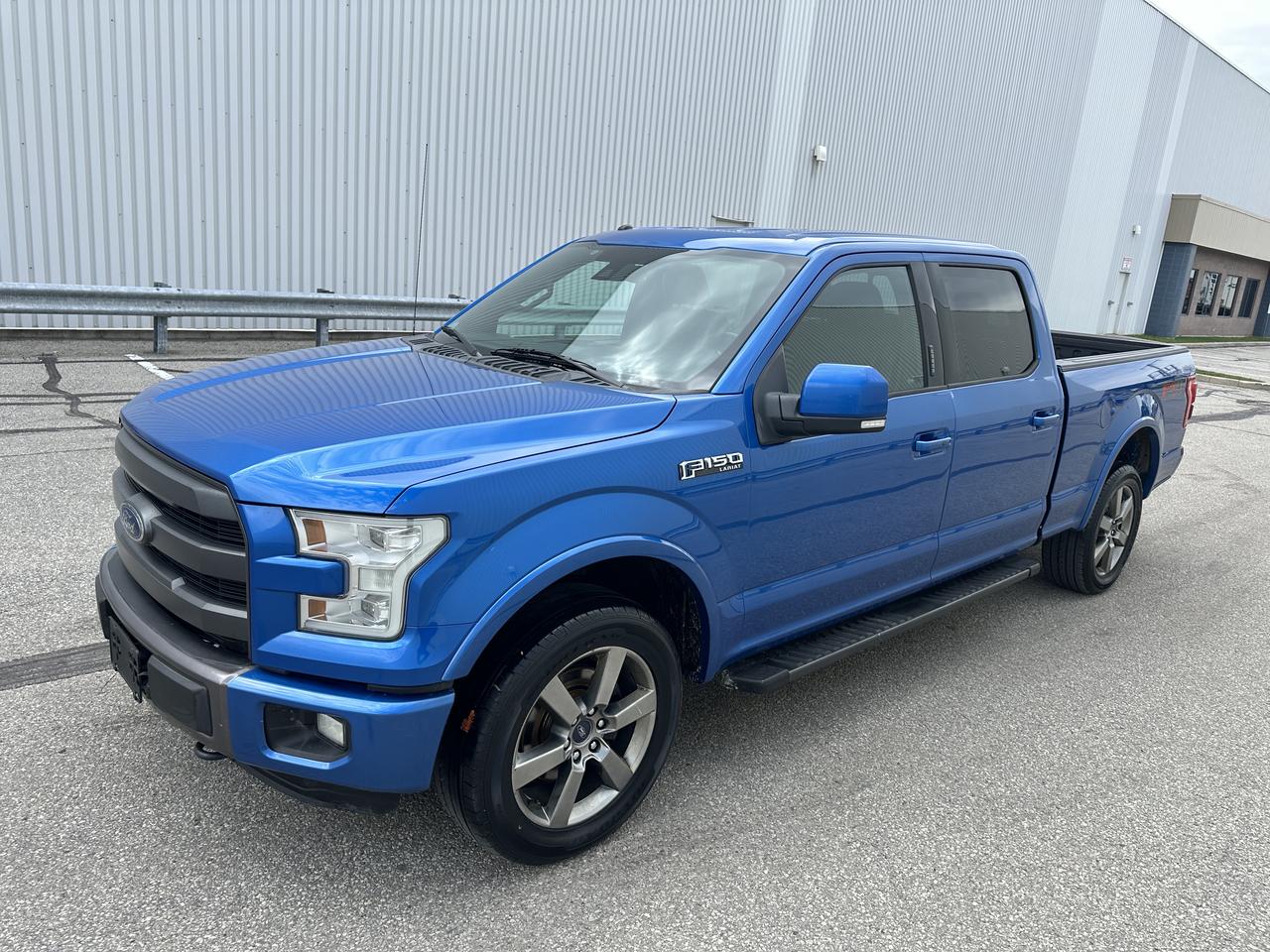 ONE PROUD MATURE ONTARIO OWNERSHIP SINCE NEW, NO ACCIDENTS OR DAMAGE REPORTED ACCORDING TO CARFAX HISTORY REPORT (VERIFIED), 2015 Ford F-150 Lariat SuperCrew 4WD FX4 Off-Road powered by the legendary 5.0L V8 Coyote engine delivering outstanding performance, reliability, and towing capability, exceptionally clean and very well kept truck showing 175,122 kms with service history, fully reconditioned by our service department including brand new all season tires and new front and rear brake pads and rotors, finished in stunning Crystal Blue Flame Metallic exterior over black leather interior, mileage does not make fair judgment for this truck given its condition and ownership history, very well equipped Lariat FX4 including FX4 OFF ROAD PACKAGE FULL LEATHER SEATING HEATED POWER FRONT SEATS FACTORY NAVIGATION SYSTEM BACKUP CAMERA ON TOUCHSCREEN BLUETOOTH HANDS FREE CONNECTIVITY, SMART PUSH BOTTOM KEYLESS START, HEATED BACK SEAT, REMOTE START & KEYLESS ENTRY (INTELLIGENT ACCESS) DUAL ZONE CLIMATE CONTROL POWER ADJUSTABLE PEDALS POWER SLIDING REAR WINDOW 20” ALLOY WHEELS SPRAY IN BEDLINERRUNNING BOARDS FACTORY TRAILER TOW PACKAGE WITH INTEGRATED BRAKE CONTROLLER FX4 SKID PLATES & OFF ROAD TUNED SUSPENSION LED BOX LIGHTING FOG LIGHTS CRUISE CONTROL,HEATED LEATHER STEERNIG WHEEL WITH STEERING WHEEL CONTROLS POWER FOLDING MIRRORS a rare well optioned Lariat FX4 with the highly desirable 5.0L V8, not your typical work truck, privately owned, very well maintained and showroom ready inside our indoor facility at M & J Canada Inc