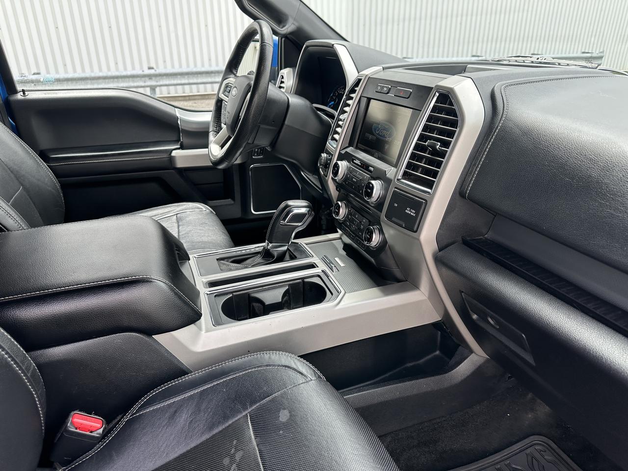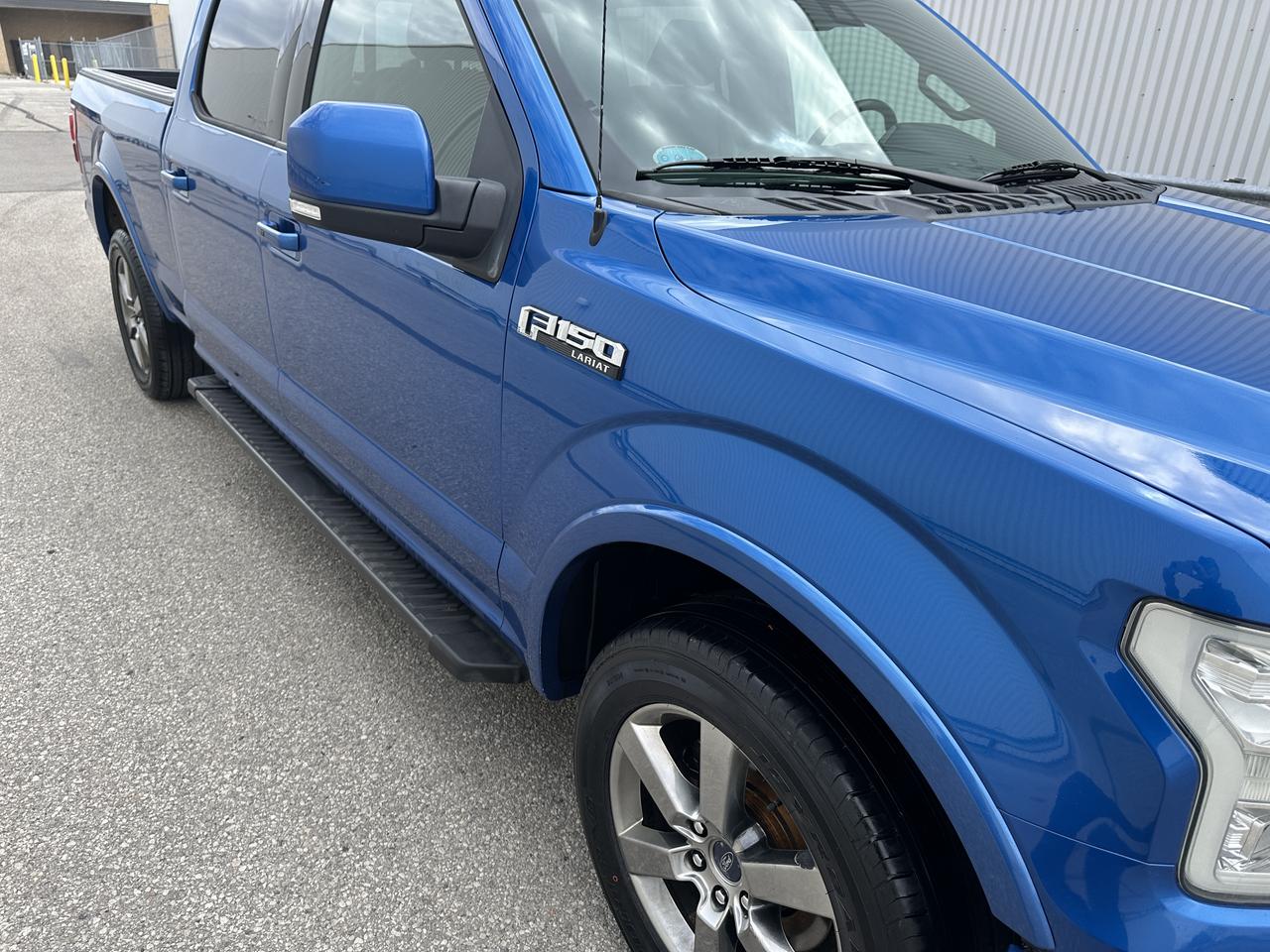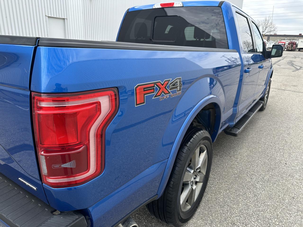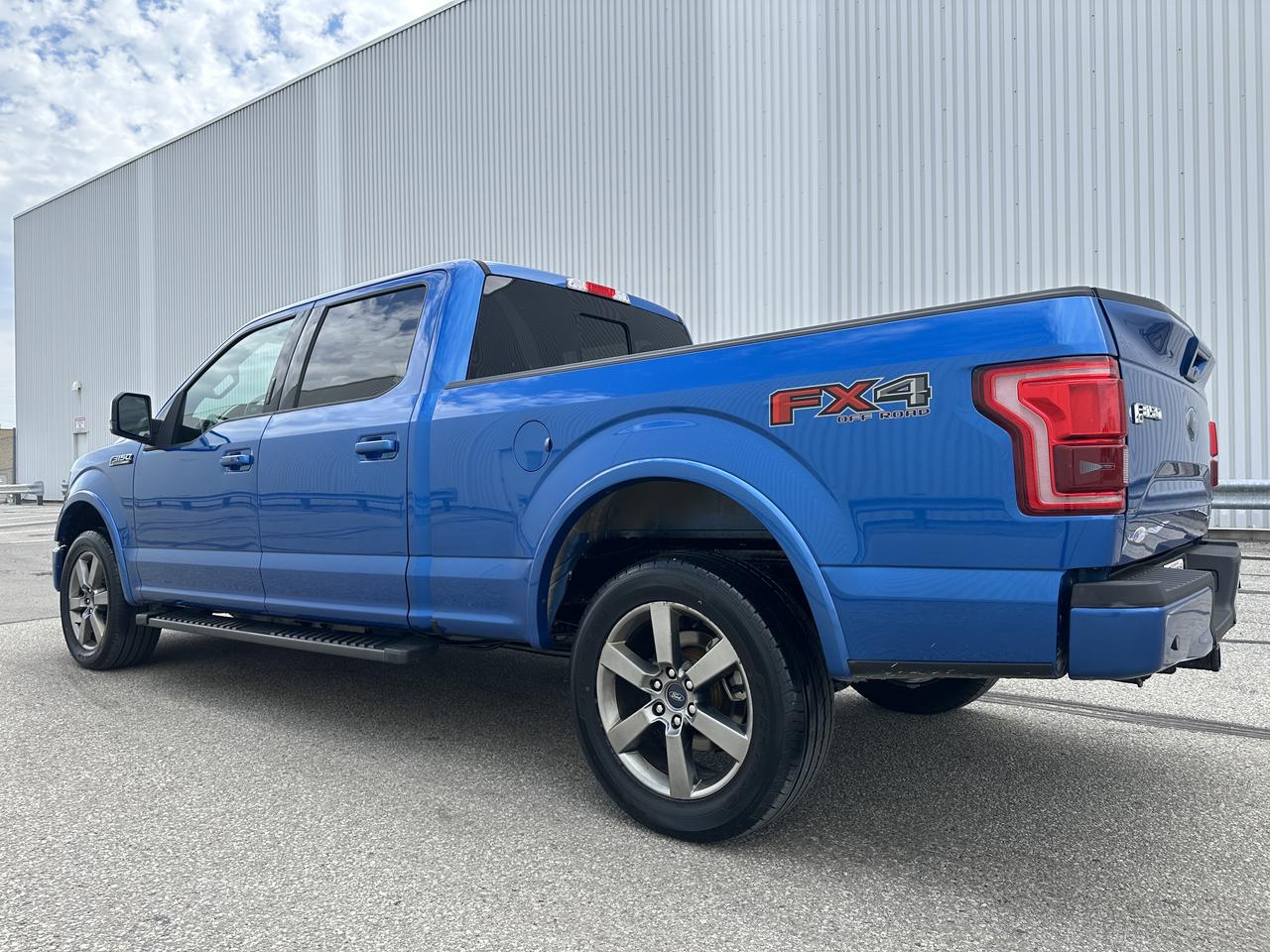 ONE PROUD MATURE ONTARIO OWNERSHIP SINCE NEW, NO ACCIDENTS OR DAMAGE REPORTED ACCORDING TO CARFAX HISTORY REPORT (VERIFIED), 2015 Ford F-150 Lariat SuperCrew 4WD FX4 Off-Road powered by the legendary 5.0L V8 Coyote engine delivering outstanding performance, reliability, and towing capability, exceptionally clean and very well kept truck showing 175,122 kms with service history, fully reconditioned by our service department including brand new all season tires and new front and rear brake pads and rotors, finished in stunning Crystal Blue Flame Metallic exterior over black leather interior, mileage does not make fair judgment for this truck given its condition and ownership history, very well equipped Lariat FX4 including FX4 OFF ROAD PACKAGE FULL LEATHER SEATING HEATED POWER FRONT SEATS FACTORY NAVIGATION SYSTEM BACKUP CAMERA ON TOUCHSCREEN BLUETOOTH HANDS FREE CONNECTIVITY, SMART PUSH BOTTOM KEYLESS START, HEATED BACK SEAT, REMOTE START & KEYLESS ENTRY (INTELLIGENT ACCESS) DUAL ZONE CLIMATE CONTROL POWER ADJUSTABLE PEDALS POWER SLIDING REAR WINDOW 20” ALLOY WHEELS SPRAY IN BEDLINERRUNNING BOARDS FACTORY TRAILER TOW PACKAGE WITH INTEGRATED BRAKE CONTROLLER FX4 SKID PLATES & OFF ROAD TUNED SUSPENSION LED BOX LIGHTING FOG LIGHTS CRUISE CONTROL,HEATED LEATHER STEERNIG WHEEL WITH STEERING WHEEL CONTROLS POWER FOLDING MIRRORS a rare well optioned Lariat FX4 with the highly desirable 5.0L V8, not your typical work truck, privately owned, very well maintained and showroom ready inside our indoor facility at M & J Canada Inc