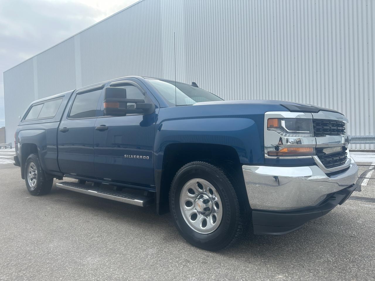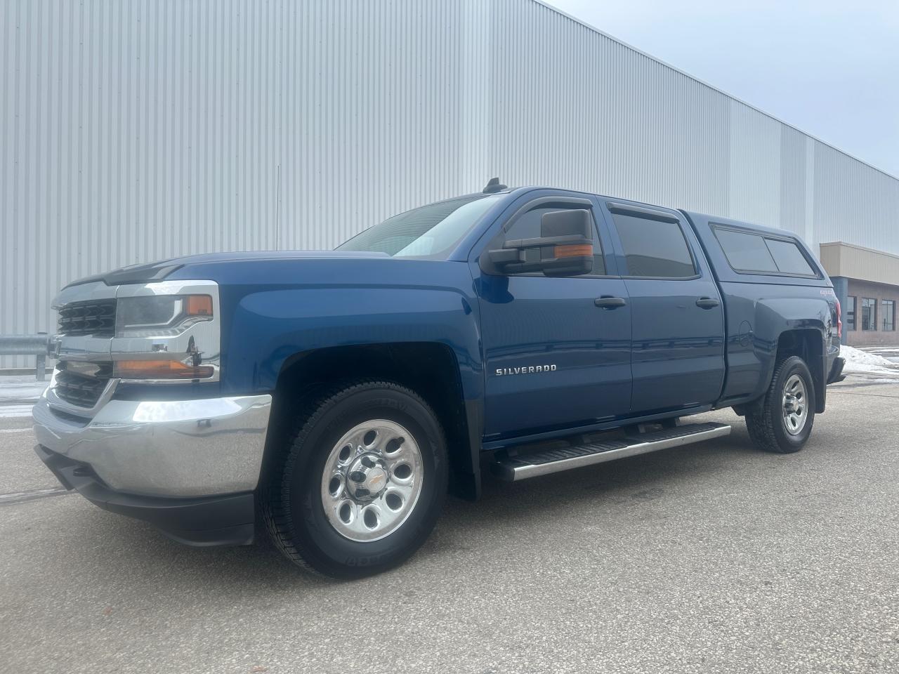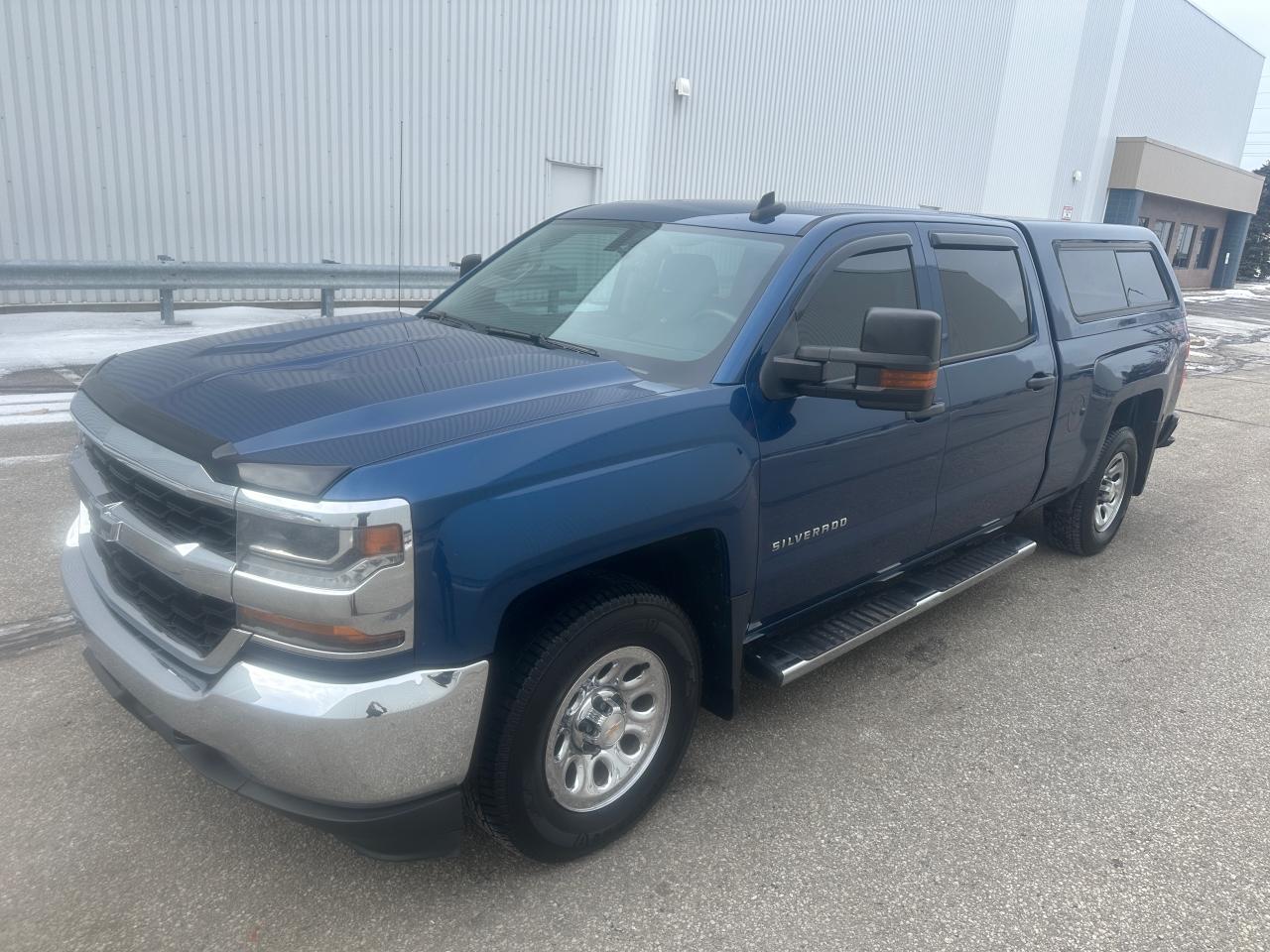 ONLY 101,735 KMS – 2016 CHEVROLET SILVERADO 1500 CREW CAB LS 4WD, LOCAL PERSONAL ONTARIO TRUCK, NO ACCIDENTS OR DAMAGE REPORTED ACCORDING TO CARFAX, OUTSTANDING SHAPE AND CONDITION THROUGHOUT. Powered by the POWERFUL AND RELIABLE 5.3 LITRE V8 ENGINE paired with a 6-SPEED AUTOMATIC TRANSMISSION, offering excellent performance for both work and everyday driving. Well equipped with 4WD, 6.5 FT BOX, PAINT-MATCHED FIBERGLASS CAP, GM TRAILERING PACKAGE, DUAL TOW MIRRORS, CHROME RUNNING BOARDS, 17” ALLOY WHEELS WRAPPED IN GOOD WINTER TIRES, BOX LINER, LED LIGHTING, and KEYLESS REMOTE ENTRY. Extremely LOW KILOMETRES FOR THE YEAR, very CLEAN AND WELL-KEPT, and HARD TO FIND IN THIS CONDITION—a solid, dependable Silverado that has been clearly OWNED AND MAINTAINED WITH CARE.
