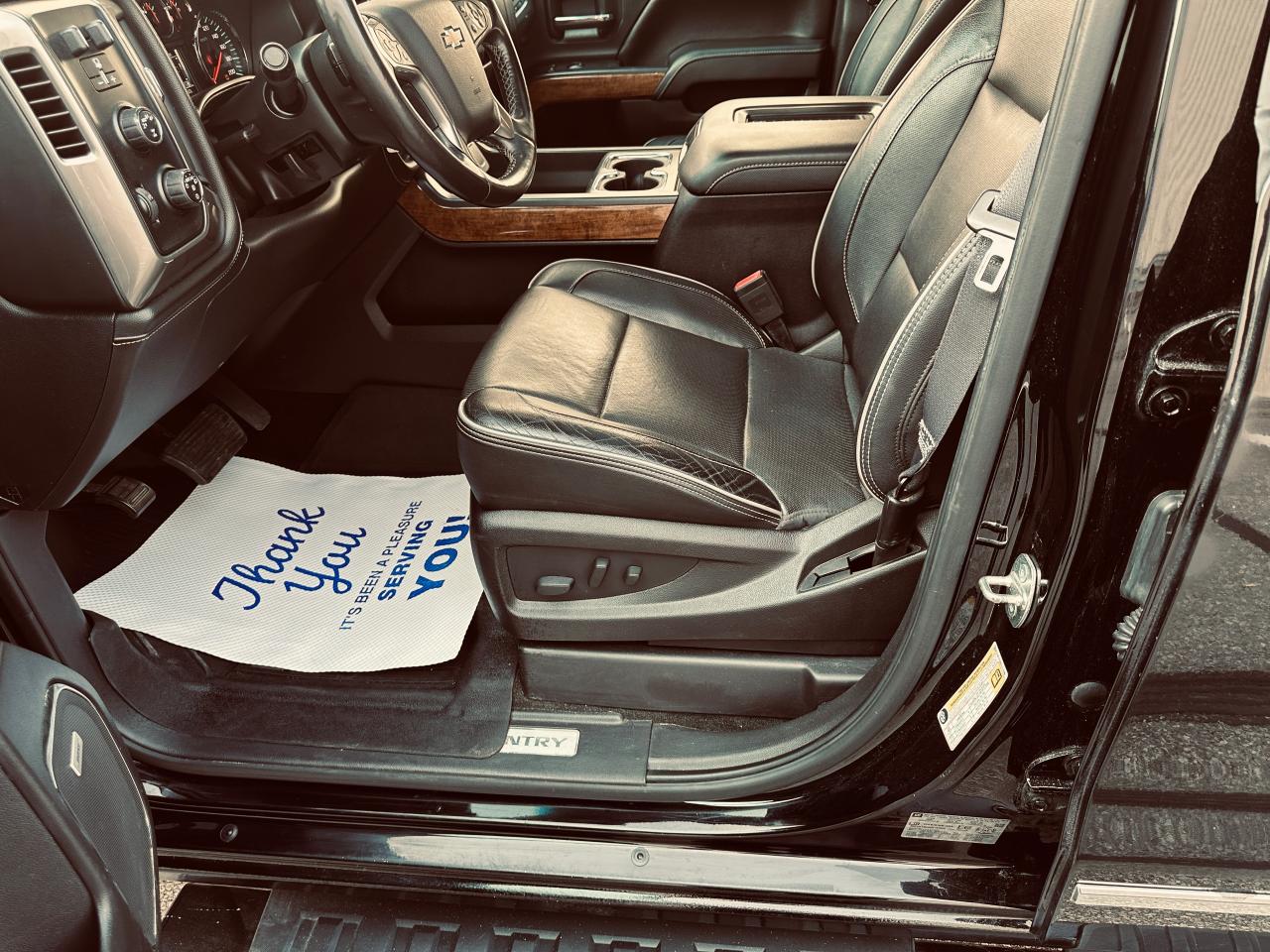 This exceptionally clean black High Country Crew Cab delivers the perfect balance of power, performance, and luxury. Powered by a strong 5.3L V8 engine paired with an 8-speed transmission and 4WD, it offers impressive strength along with a smooth and reliable drive. Inside, you’ll find a premium black leather interior with heated and cooled power-adjustable front seats, factory navigation with backup assist on a responsive touchscreen, and thoughtful convenience features including middle and overhead storage consoles. This truck is fully equipped with the GM trailing package, upgraded suspension, a performance exhaust system, 22-inch chrome wheels on excellent good michelin tires, LED lighting throughout, a spray-in bedliner with a hard tonneau cover, black to match running boards, power-folding mirrors, keyless entry with remote start and a rear power ventilation window. It comes to us as a local GM store trade with verified Carfax history, showing careful one ownership and proper maintenance and well under coated, Pricing includes sale price plus $299 for a new Ontario Safety Standards Certificate, $22.50 OMVIC fee, HST, and $91 licensing fee which includes new plates. We are your Certified Pre-Owned Truck Centre, offering quality trucks and full-size SUVs with new arrivals daily, and extended warranties are available for up to three years for added peace of mind.