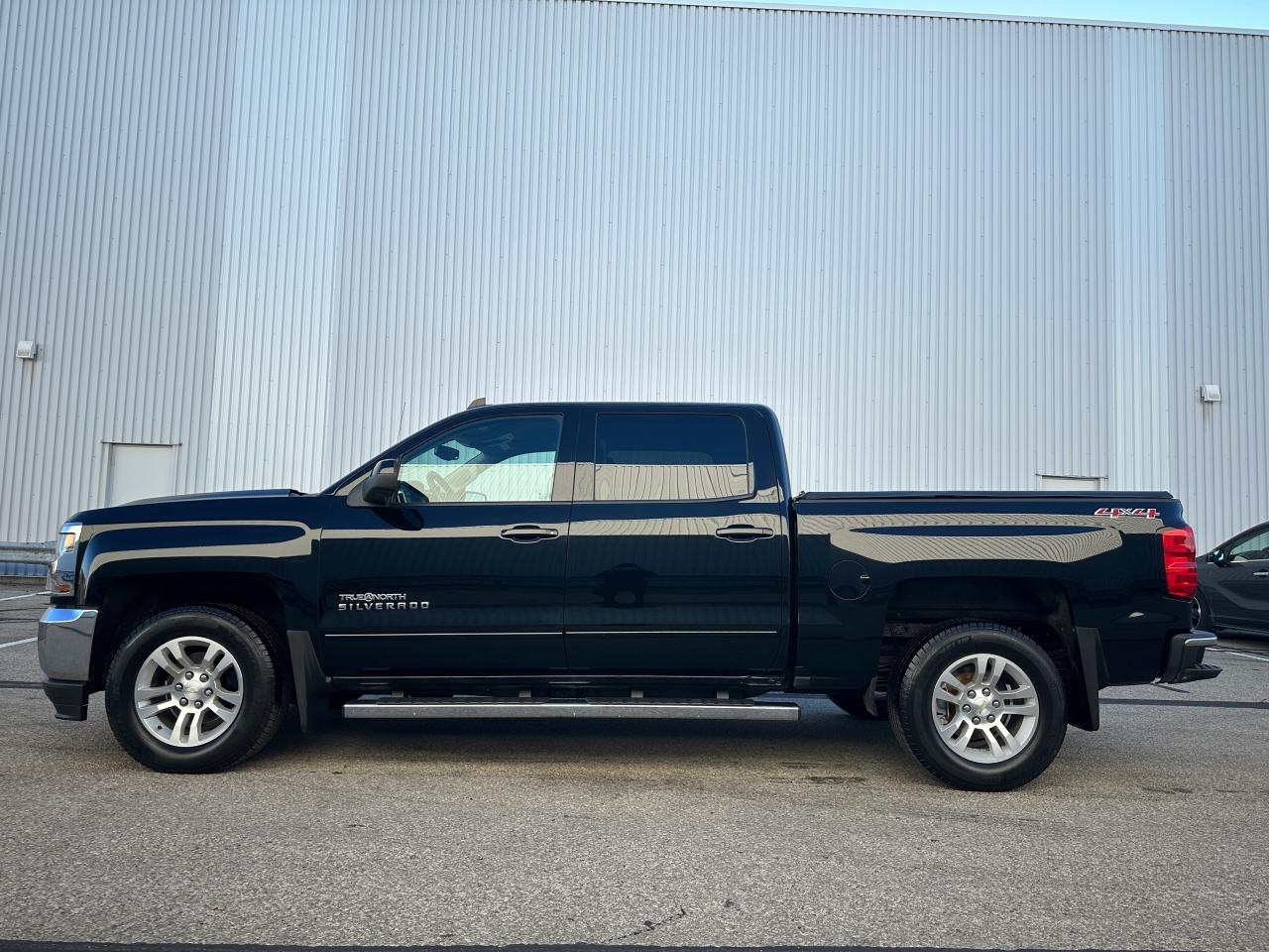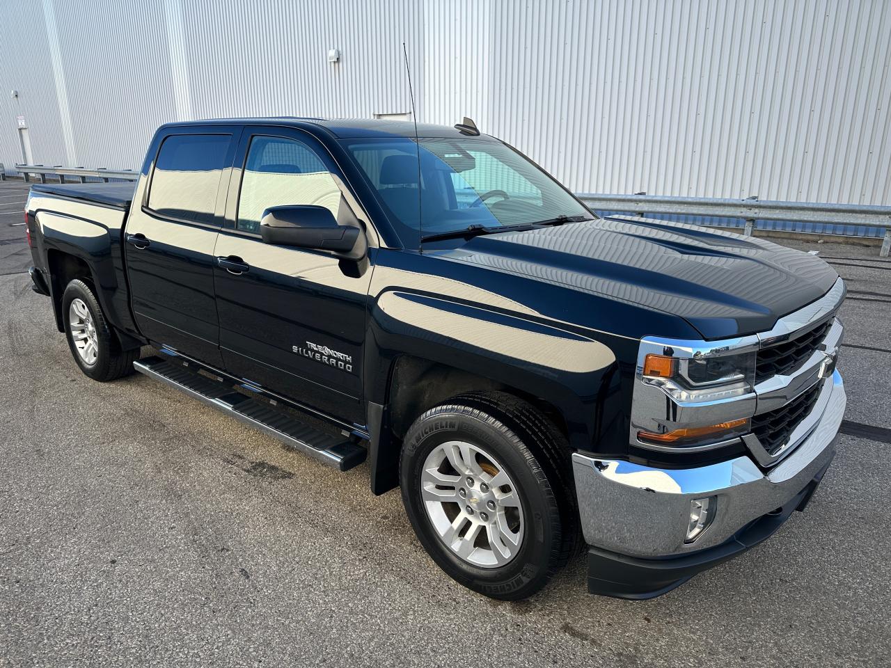 Black 2017 Chevy Silverado LT Crew Cab True North Edition, Short Box – 158,426 KMS. Proud local one-owner personal ownership since 2017. No collisions according to Carfax History Report (verified). Powered by a V8 5.3L powerful engine with 6-speed transmission and 4WD. This Silverado is well-equipped with: GM trailering package, back-up assist, driver power seat, heated front seats, Leather steering wheel, LED lighting, spray-in bed liner, tonneau cover, running boards, alloy wheels, keyless remote, remote start, and much more. Outstanding shape and condition – ready to drive!
