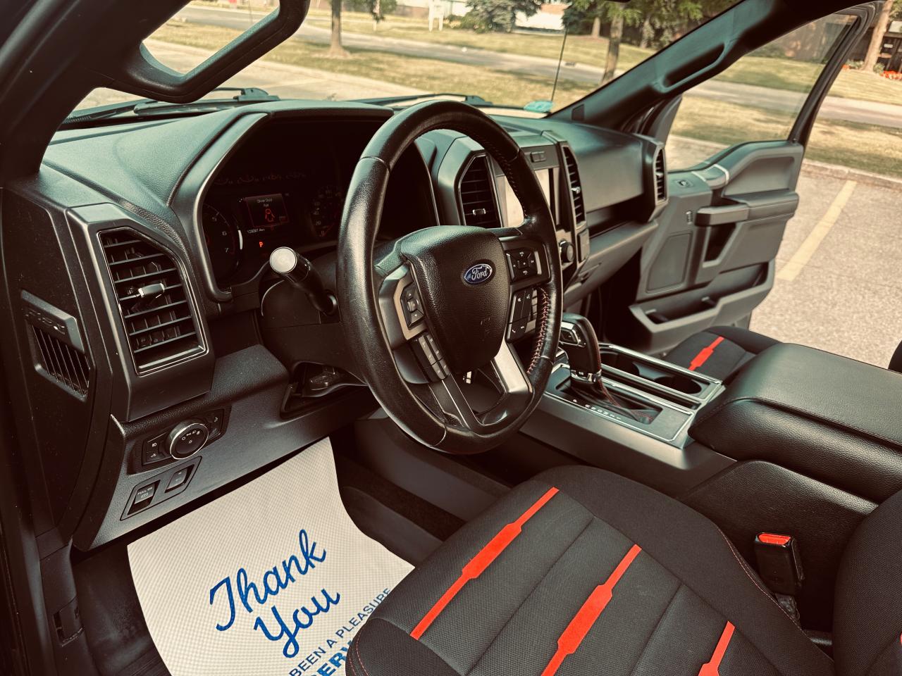 Engine: 2.7L V6 | Drivetrain: 4x4 | Ownership: One Local Ontario Owner (Verified by Carfax)Finished in Crystal Black Metallic Including Body Factory Body Black Graphics over a Black and Red Molded Sport Interior, this sharp-looking F-150 Sport Package comes fully loaded with high-end features and rugged performance enhancements: