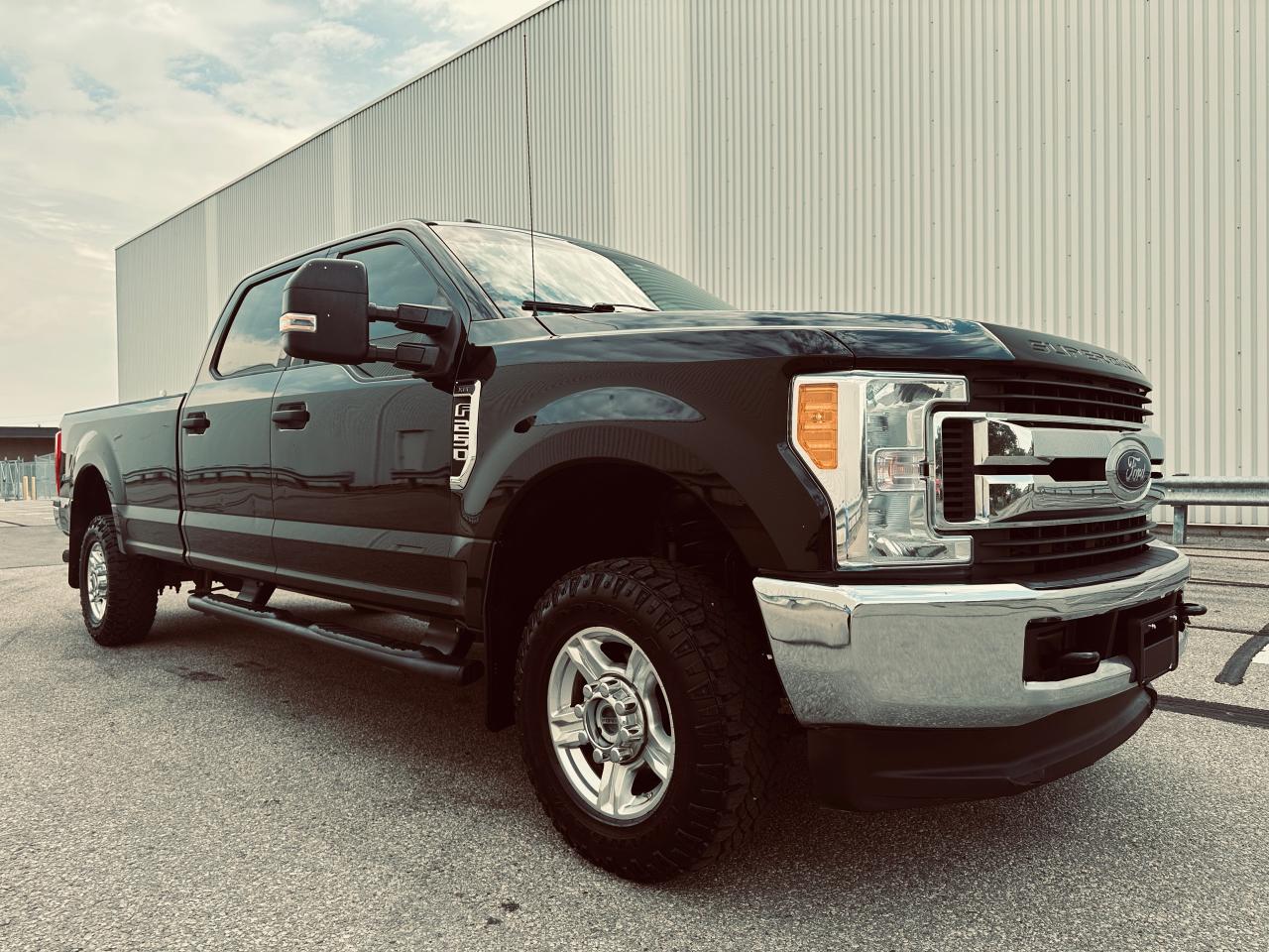 FORD F-250 SUPER DUTY XLT SUPERCREW 4WD WITH RARE 8-FT BOX — Finished in a METALLIC BLACK EXTERIOR that gives this monster the respect and commanding appearance it deserves, this F-250 Super Duty SuperCrew is in outstanding shape and condition and built for serious work with Ford’s high-strength heavy-duty design delivering maximum towing and payload capability. This hard-to-find 8-foot box configuration is equipped with the factory 5TH-WHEEL PREP PACKAGE and TRAILERING PACKAGE, making it ideal for heavy towing applications. Powered by a strong and reliable 6.2L GASOLINE V8 ENGINE paired with 4WD, it offers excellent power, durability, and confident all-weather performance. Inside, the XLT Luxury Package features individual front seats, power driver seat, middle and overhead console, power towing mirrors, backup camera, keyless entry, and heavy-duty running boards — perfectly blending comfort with utility. A powerful, well-balanced machine with excellent ride and handling, ready for work or long-term ownership.