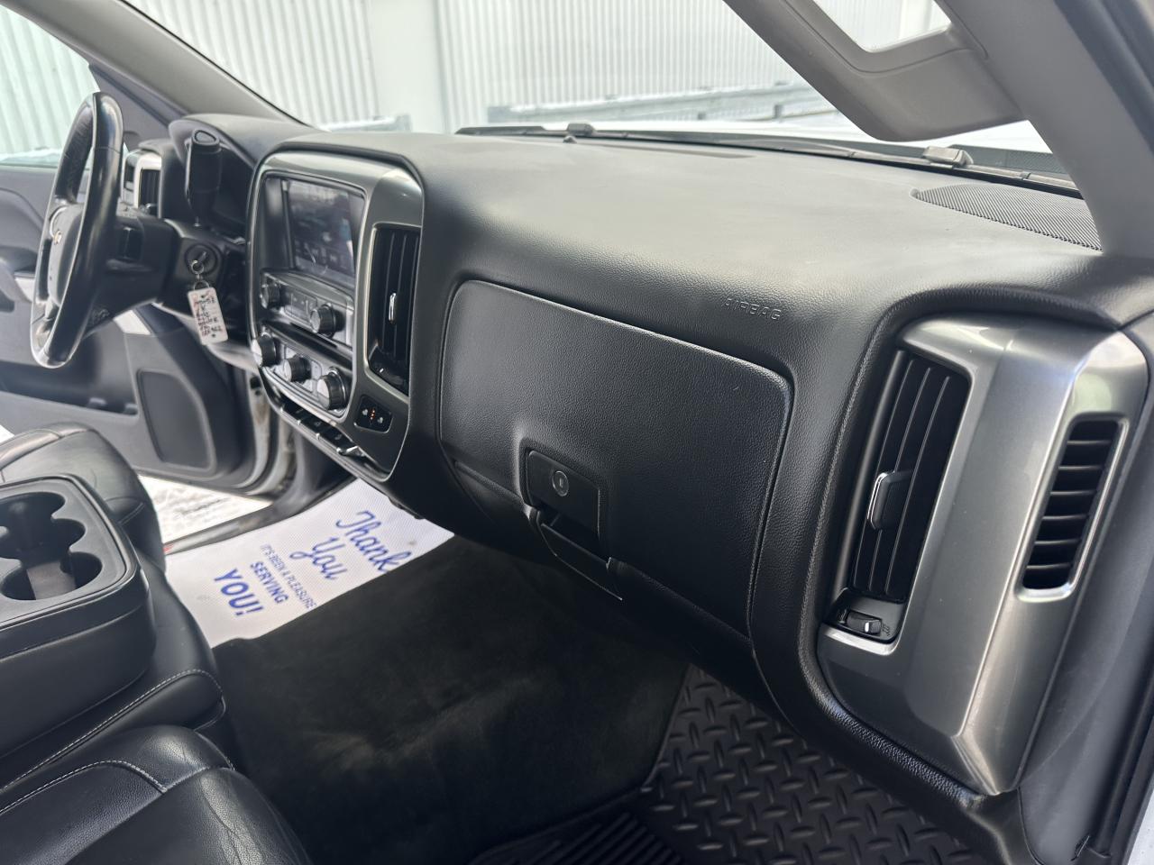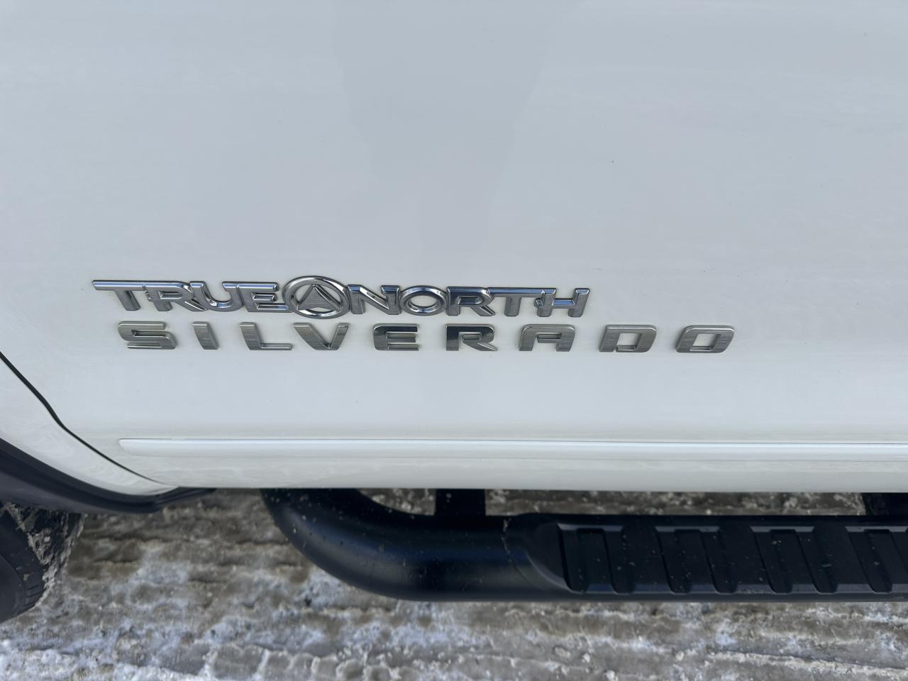 Exceptionally clean and hard-to-find True North Package Silverado, finished in Summit White over Black Leather Interior. No accidents or damage reported according to Carfax history report, showing as personal ownership since new.