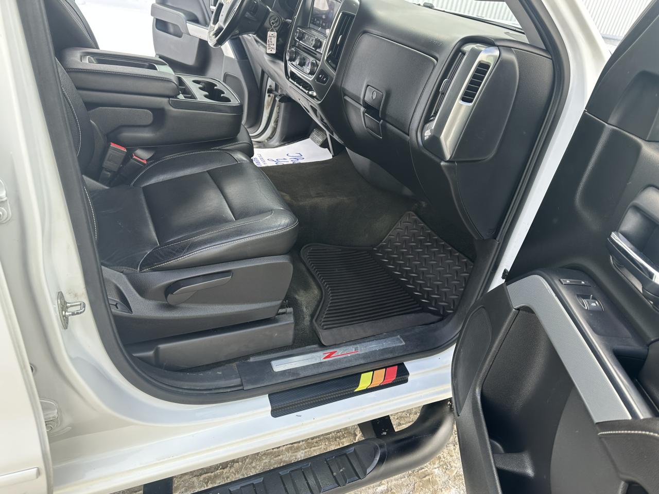 Loaded with premium features including full leather seating, heated front seats, power driver seat, touchscreen backup camera, trailer hitch, heavy-duty running boards, bed liner, LED lighting, and unique Z71 off-road appearance package. Styled with 6-spoke high-end black 18"wheels, sporty heavy-duty wheel flares, and color-matched grille and bumpers for a bold, aggressive look.