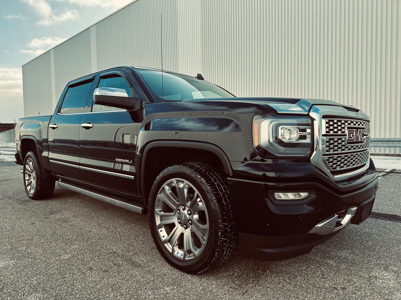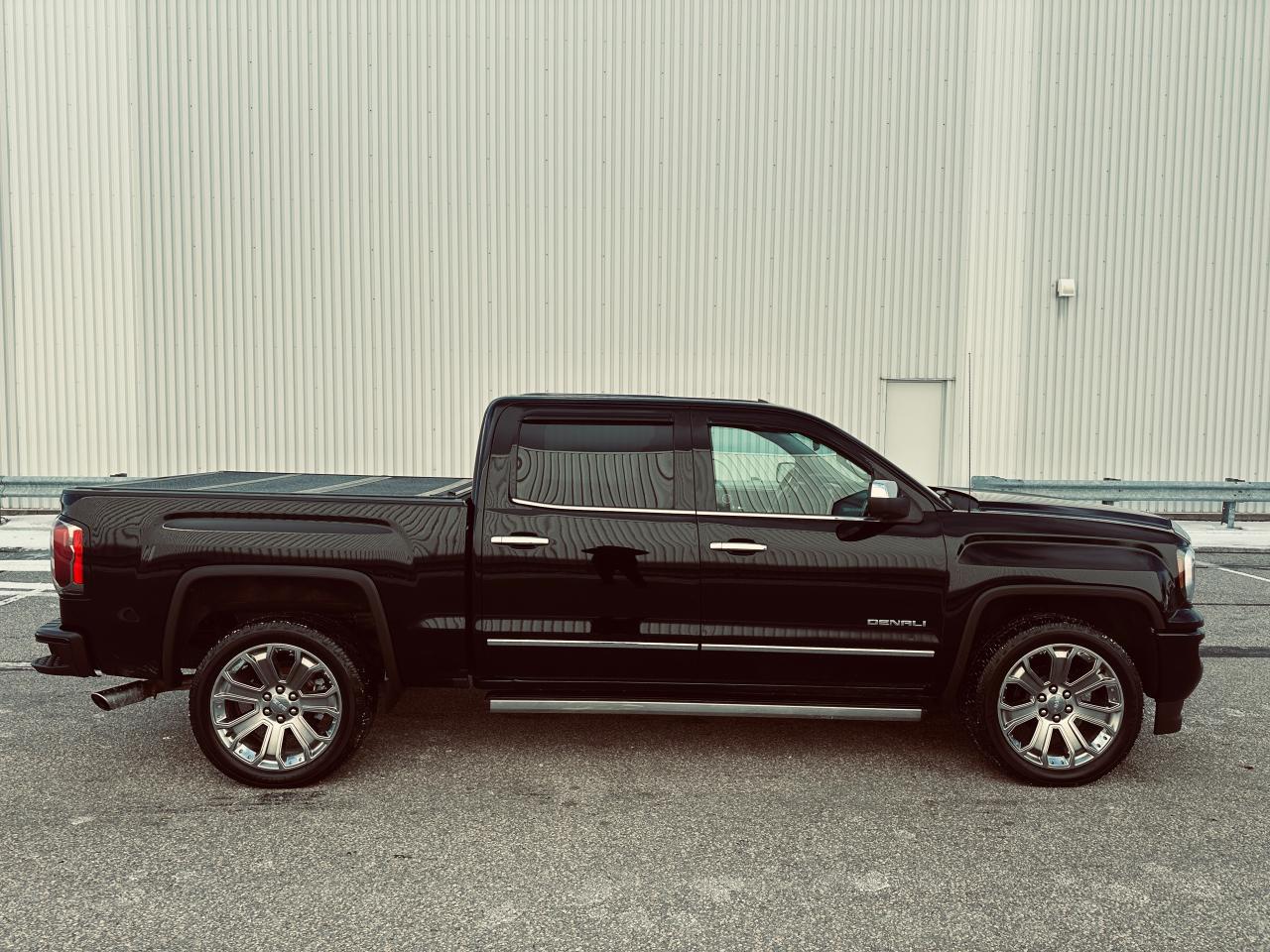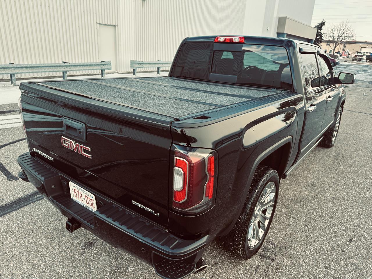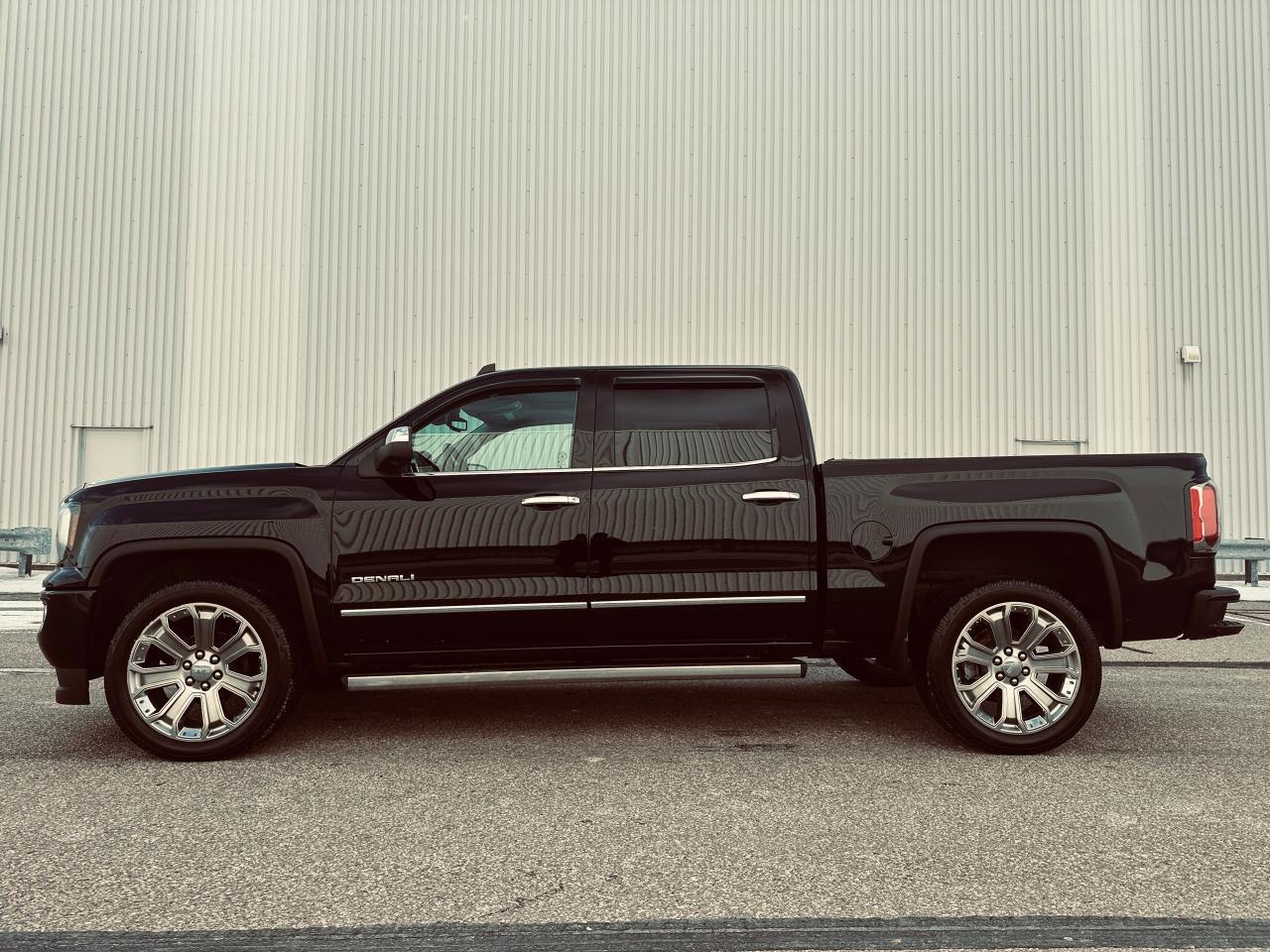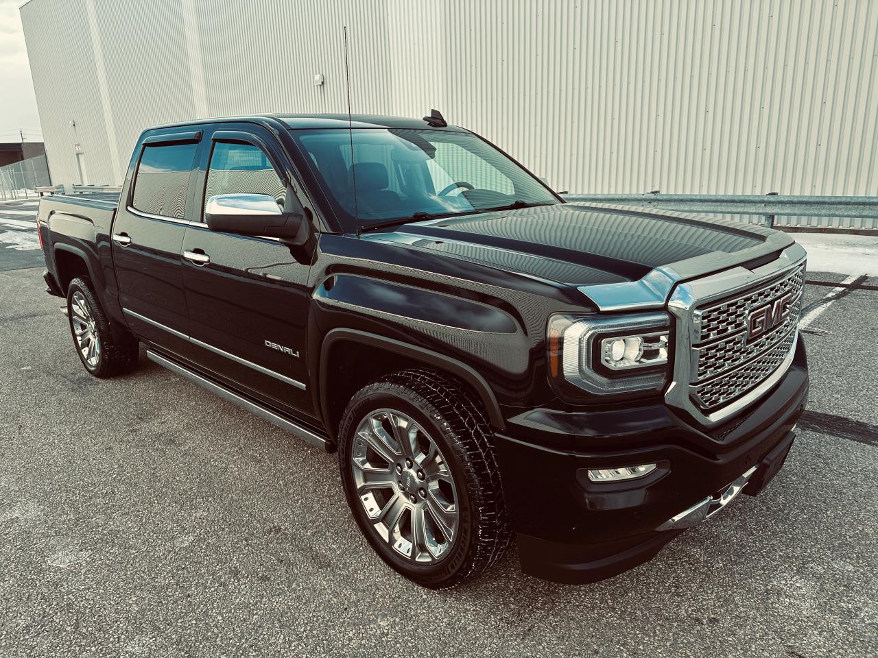 EXCEPTIONALLY CLEAN 2018 GMC SIERRA 1500 DENALI ULTIMATE TRIPLE BLACK, LOCAL ONTARIO OWNERSHIP WITH NO ACCIDENTS OR DAMAGE REPORTED ACCORDING TO THE CARFAX HISTORY REPORT (VERIFIED), LOADED WITH 6.2 LITRE V8 ENGINE, 8-SPEED AUTOMATIC TRANSMISSION, AND 4WD DELIVERING EXCEPTIONAL POWER AND REFINEMENT FOR BOTH WORK AND PLEASURE, VERY WELL EQUPPED TRUCK SUCH GM TRAILERING PACKAGE, POWER SLIDING REAR WINDOW, FULL PREMIUM LEATHER INTERIOR, HEATED AND COOLED INDIVIDUAL POWER FRONT SEATS, HEATED STEERING WHEEL, MEMORY SEATING, DUAL ZONE AUTOMATIC CLIMATE CONTROL, FACTORY POWER SUNROOF, FACTORY NAVIGATION, BACKUP CAMERA WITH PARK ASSIST DISPLAYED ON TOUCHSCREEN, BOSE PREMIUM AUDIO SYSTEM, BLUETOOTH HANDS FREE CONNECTIVITY, STEERING WHEEL CONTROLS, REMOTE KEYLESS ENTRY WITH REMOTE START, LED EXTERIOR AND INTERIOR LIGHTING, POWER RUNNING BOARDS, POWER FOLDING AND HEATED MIRRORS, FRONT AND REAR PARK SENSORS, LANE KEEP ASSIST, FORWARD COLLISION ALERT, BLIND SPOT MONITORING, 22" CHROME DENALI WHEELS, SPRAY IN BED LINER, HARD TONNEAU BED COVER, TRAILER BRAKE CONTROLLER, TINTED WINDOWS, OWNED AND METICULOUSLY MAINTAINED BY MATURE OWNERSHIP, REMAINING IN SUPER CLEAN SHAPE AND CONDITION THROUGHOUT, 236,295 KMS WITH MILEAGE FAIRLY AND RESPONSIBLY REFLECTED IN THE VALUE, A RARE OPPORTUNITY TO OWN A FULLY LOADED DENALI ULTIMATE THAT DELIVERS LUXURY, POWER, AND PRESTIGE.