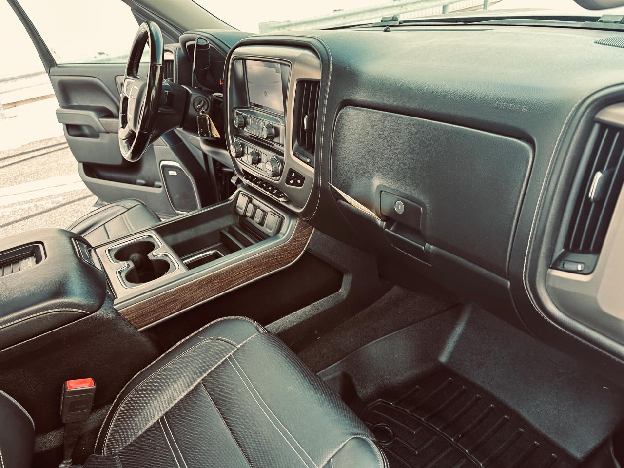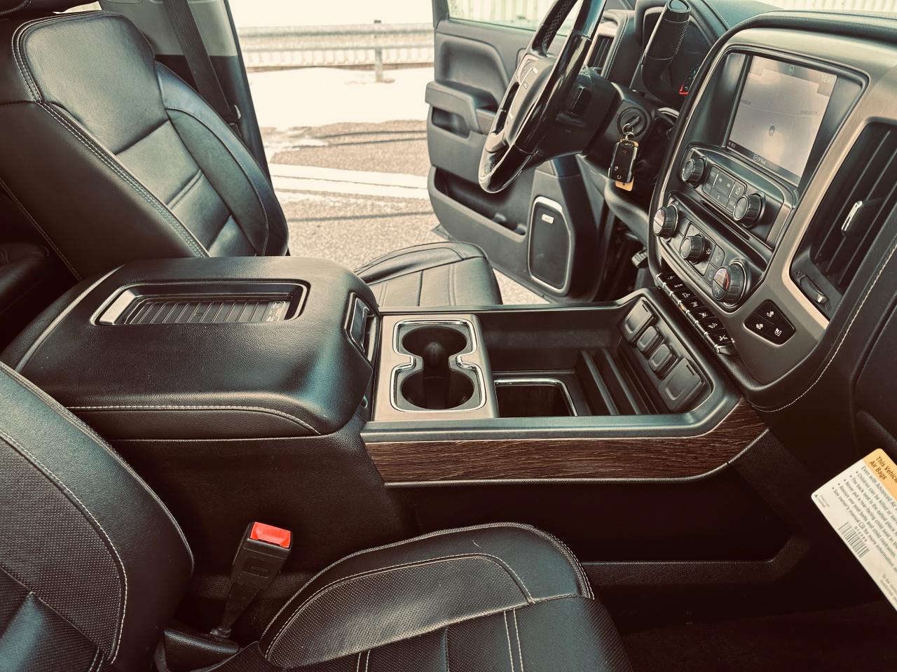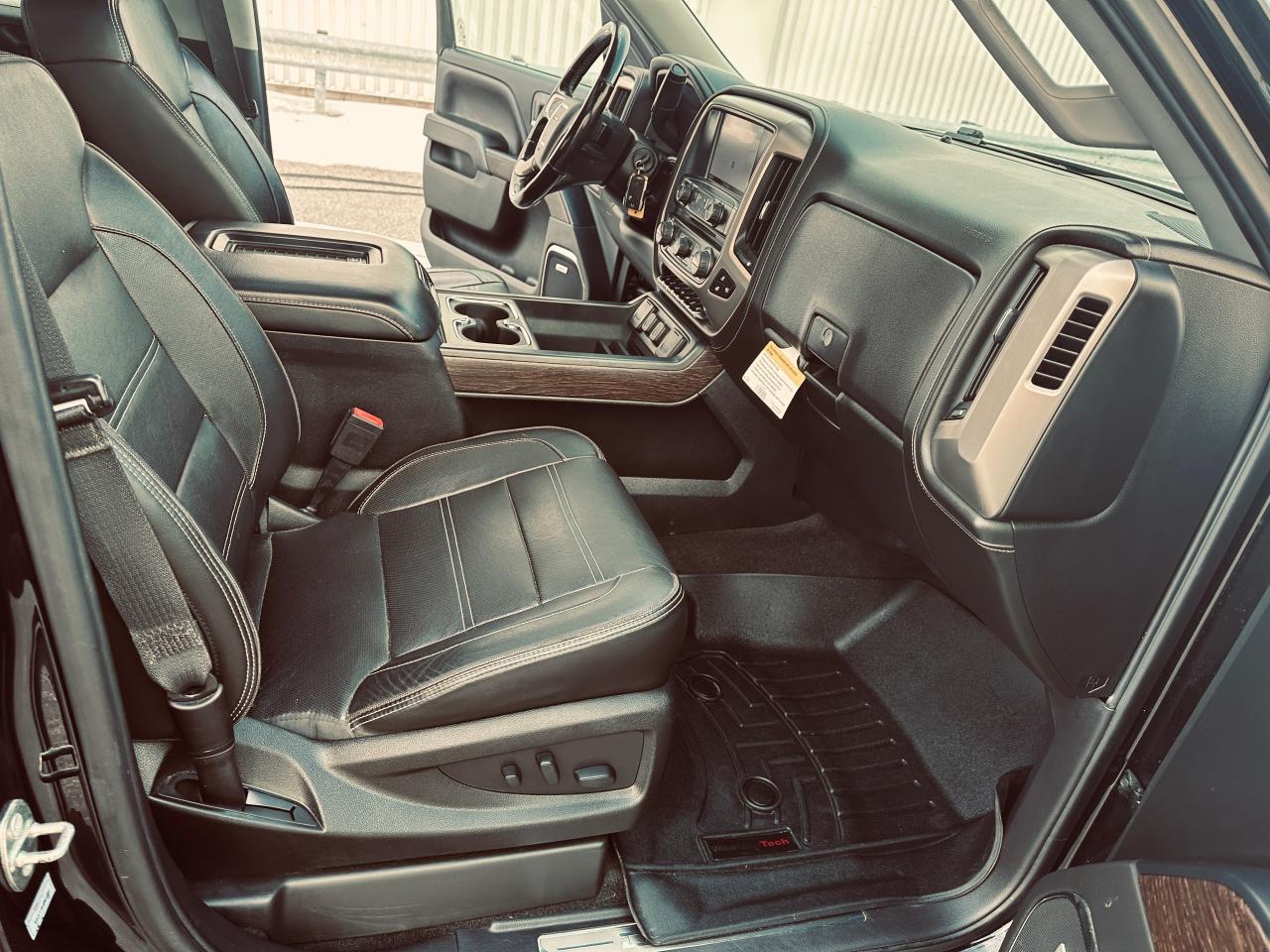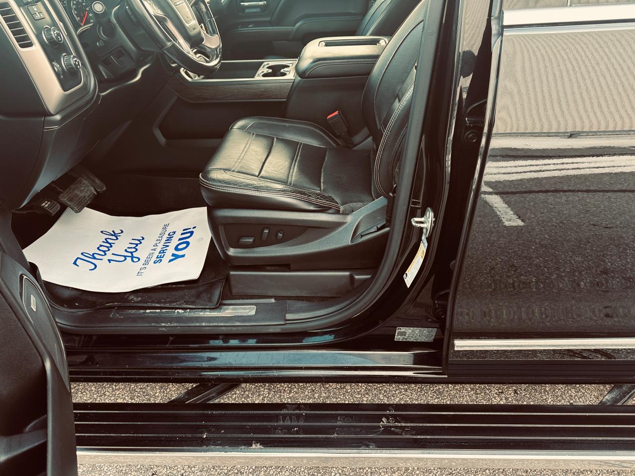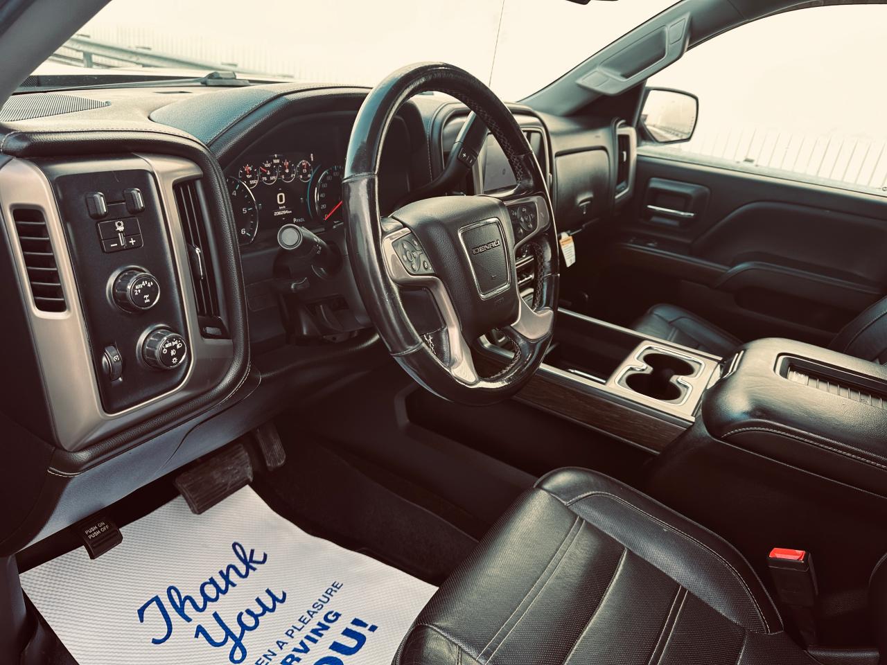 EXCEPTIONALLY CLEAN 2018 GMC SIERRA 1500 DENALI ULTIMATE TRIPLE BLACK, LOCAL ONTARIO OWNERSHIP WITH NO ACCIDENTS OR DAMAGE REPORTED ACCORDING TO THE CARFAX HISTORY REPORT (VERIFIED), LOADED WITH 6.2 LITRE V8 ENGINE, 8-SPEED AUTOMATIC TRANSMISSION, AND 4WD DELIVERING EXCEPTIONAL POWER AND REFINEMENT FOR BOTH WORK AND PLEASURE, VERY WELL EQUPPED TRUCK SUCH GM TRAILERING PACKAGE, POWER SLIDING REAR WINDOW, FULL PREMIUM LEATHER INTERIOR, HEATED AND COOLED INDIVIDUAL POWER FRONT SEATS, HEATED STEERING WHEEL, MEMORY SEATING, DUAL ZONE AUTOMATIC CLIMATE CONTROL, FACTORY POWER SUNROOF, FACTORY NAVIGATION, BACKUP CAMERA WITH PARK ASSIST DISPLAYED ON TOUCHSCREEN, BOSE PREMIUM AUDIO SYSTEM, BLUETOOTH HANDS FREE CONNECTIVITY, STEERING WHEEL CONTROLS, REMOTE KEYLESS ENTRY WITH REMOTE START, LED EXTERIOR AND INTERIOR LIGHTING, POWER RUNNING BOARDS, POWER FOLDING AND HEATED MIRRORS, FRONT AND REAR PARK SENSORS, LANE KEEP ASSIST, FORWARD COLLISION ALERT, BLIND SPOT MONITORING, 22" CHROME DENALI WHEELS, SPRAY IN BED LINER, HARD TONNEAU BED COVER, TRAILER BRAKE CONTROLLER, TINTED WINDOWS, OWNED AND METICULOUSLY MAINTAINED BY MATURE OWNERSHIP, REMAINING IN SUPER CLEAN SHAPE AND CONDITION THROUGHOUT, 236,295 KMS WITH MILEAGE FAIRLY AND RESPONSIBLY REFLECTED IN THE VALUE, A RARE OPPORTUNITY TO OWN A FULLY LOADED DENALI ULTIMATE THAT DELIVERS LUXURY, POWER, AND PRESTIGE.