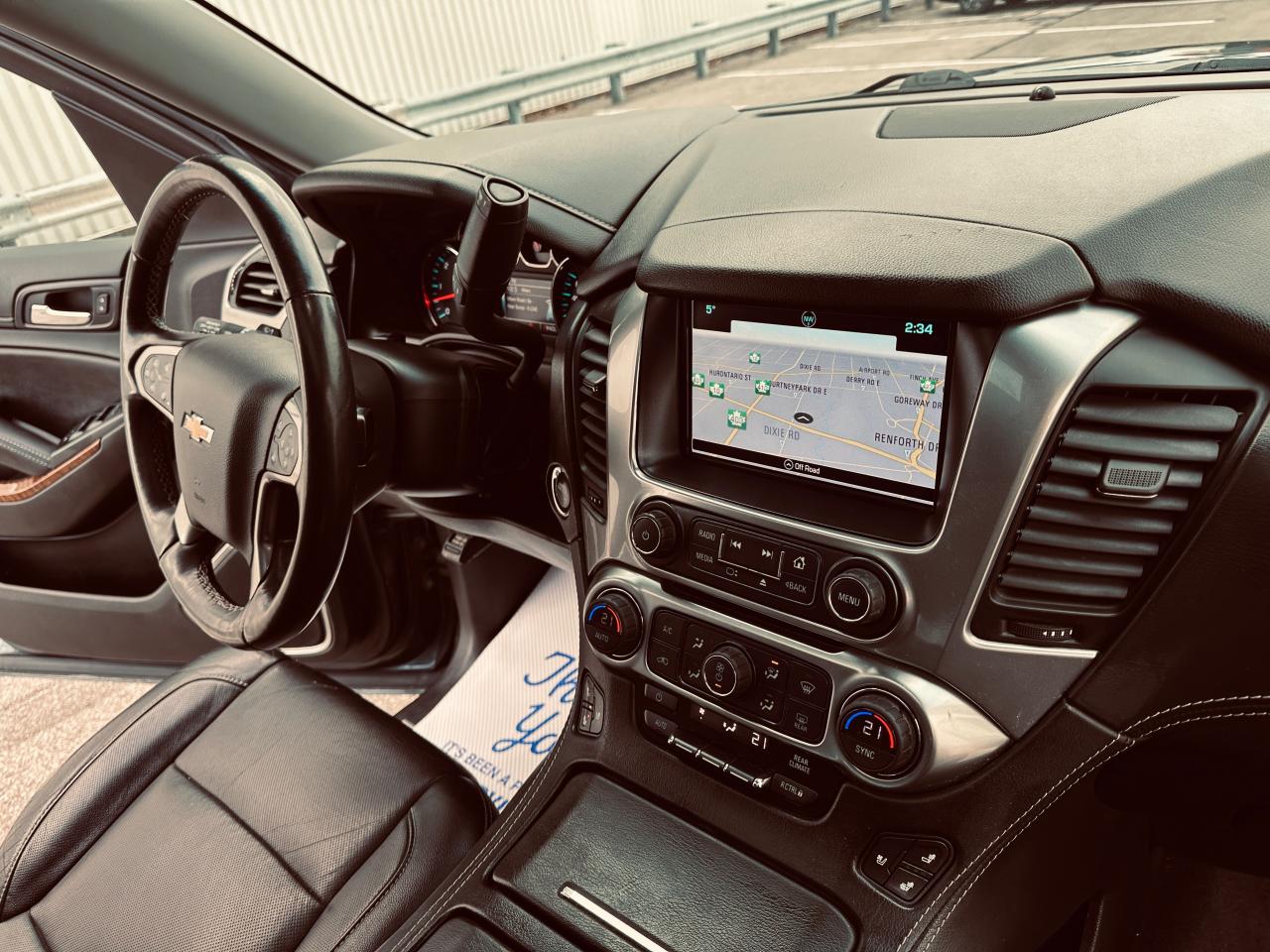 HIGHLIGHTED OPTIONS: 5.3L V8 Engine, PREMIER Trim, 7-Passenger Seating, Full Leather Interior, Heated & Cooled Front Seats, Heated Second-Row Seats, Power Folding 3rd Row Seats, Factory Navigation System, Backup Camera, Front & Rear Park Assist Sensors, BOSE Premium Sound System, Sunroof/Moonroof, Rear DVD Entertainment, Remote Start & Keyless Entry/Push Button Start, Lane Keep Assist, Forward Collision Alert, Blind Spot Monitoring, Power Liftgate, Running Boards, Premium 20” Alloy Wheels, GM Factory Towing Package. Beautifully kept inside and out; runs smooth, powerful, and fully loaded for comfort, safety, and family travel.