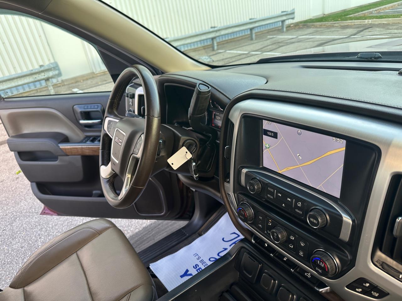Exceptionally clean, No Accidents Reported according to Car Fax history report ( Verified)— maybe the cleanest one in town! This 2015 GMC Sierra SLT comes fully loaded and in outstanding condition, featuring full ventilated leather interior with heated and cooled power front seats, individual front seating, middle and overhead consoles, factory navigation with touchscreen and backup camera, premium Bose sound system, GM towing package, bed liner, chrome running boards, 20-inch chrome wheels wrapped in near-new high-end tires, towing mirrors, chrome bug deflector and chrome rain visors. Keyless entry and remote start, Finished in premium Pearl Metallic Victory Red paint over a luxurious two-tone caramel and brown interior, this truck is powered by a strong 5.3L V8 engine paired with a smooth 6-speed transmission and 4WD, making it both powerful and dependable.