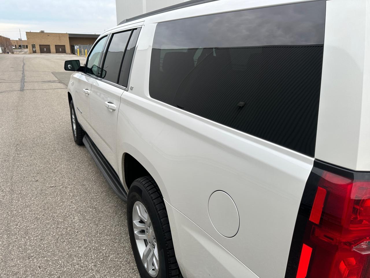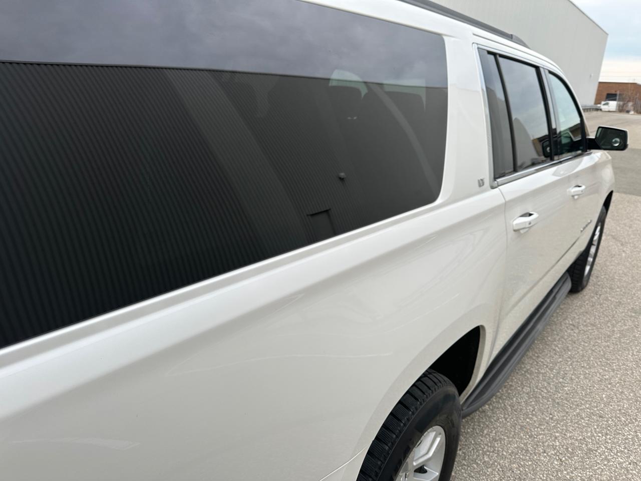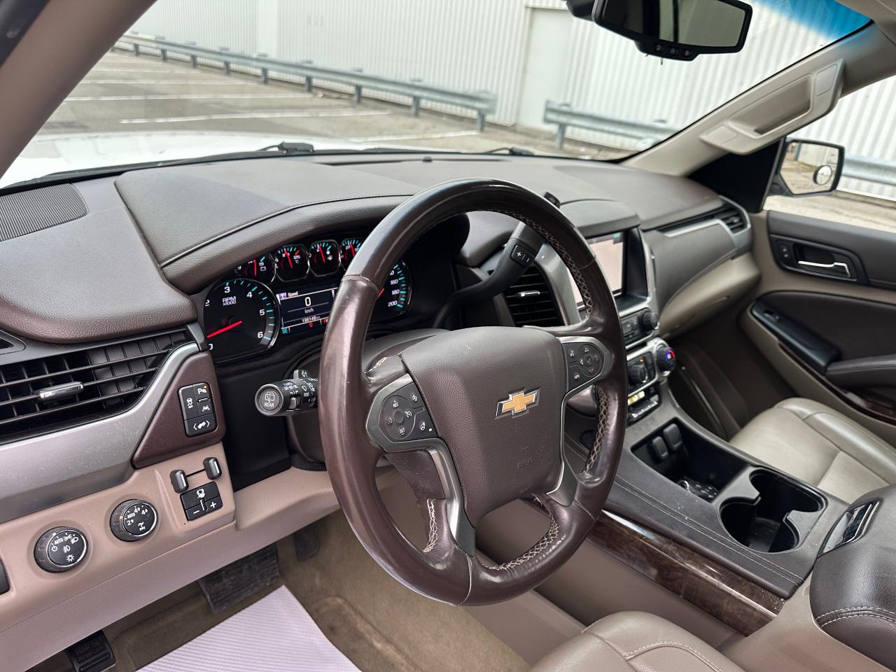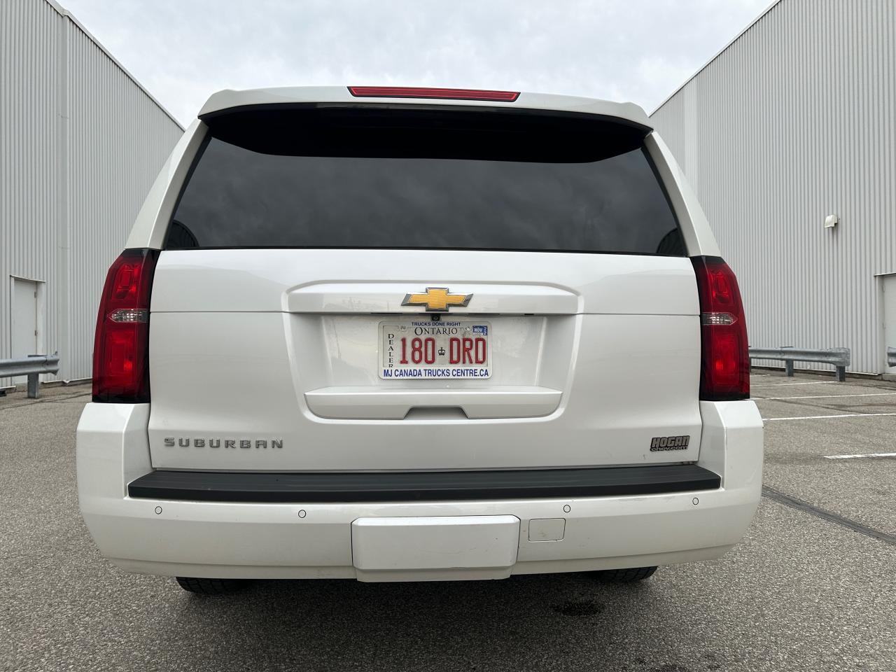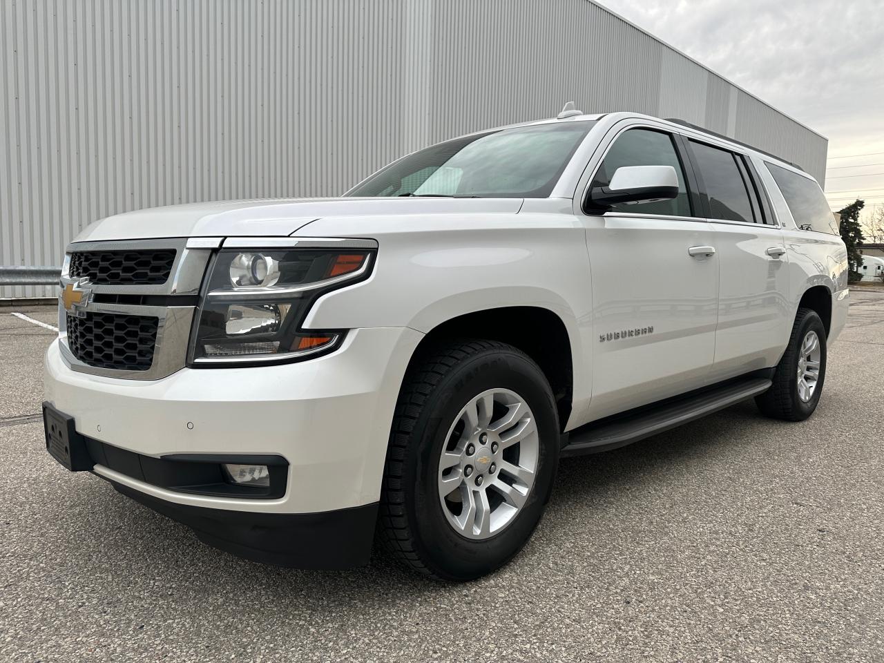 FULLY APPOINTED PEARL WHITE 8 PASSENGERS SUBURBAN, STATE OF THE ART INTERIOR INCLUDING TWO TUNE TAN AND BROWN LEATHER SEAT / INDIVIDUAL POWER HEATED FRONT SEATS / MIDDLE CONSOLE / SUNROOF / FACTORY NAVIGATION & BACKUP CAMERA ON A TOUCH SCREEN / BOSE AUDO SYSTEM / 2 DVD / HEATED LEATHER STEERING WHEEL / GM SMART KEYLESS PUSH START BUTTOM / TRAILING PACKAGE / POWER FOLDING THRID SEAT / POWER TAILGATE / POWER FOLDING MIRRORS / 18" WHEELS / RUNNING BOARDS / LED LIGHTING / DEEP TINTED WINDOWS, ETC.