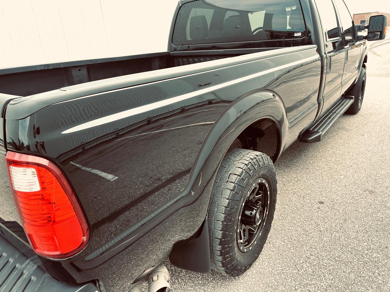 BLACK F-250 SUPER DUTY POWER STROKE DIESEL V8 6.7 LITRE ENGINE, 4WD, 6 SPEED TRANSMISSION, 4WD, 8 FT BOX, FACTORY TRAILING PKG, BED LINER, RUNNING BOARDS, 5TH WHEEL PREP, ROOF CLEARANCE LIGHTS, BACKUP ASSIST, KEYLESS ENTRY & START, HIGH END BLACK WHEELS, ETC.