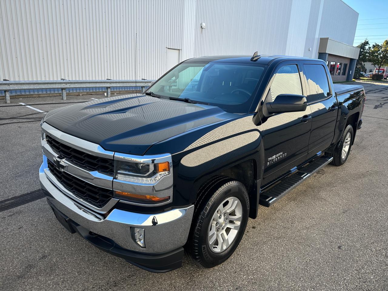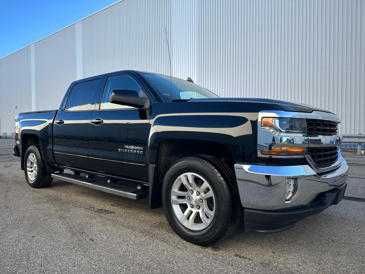 Black 2017 Chevy Silverado LT Crew Cab True North Edition, Short Box – 158,426 KMS. Proud local one-owner personal ownership since 2017. No collisions according to Carfax History Report (verified). Powered by a V8 5.3L powerful engine with 6-speed transmission and 4WD. This Silverado is well-equipped with: GM trailering package, back-up assist, driver power seat, heated front seats, Leather steering wheel, LED lighting, spray-in bed liner, tonneau cover, running boards, alloy wheels, keyless remote, remote start, and much more. Outstanding shape and condition – ready to drive!