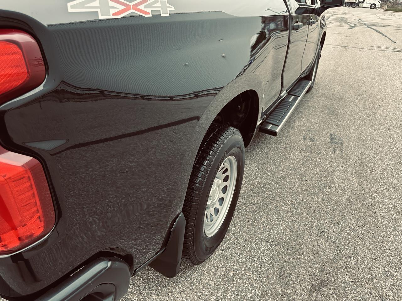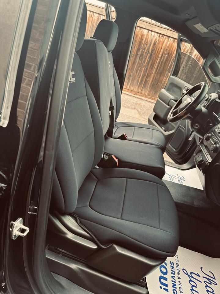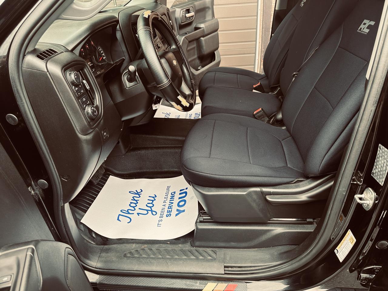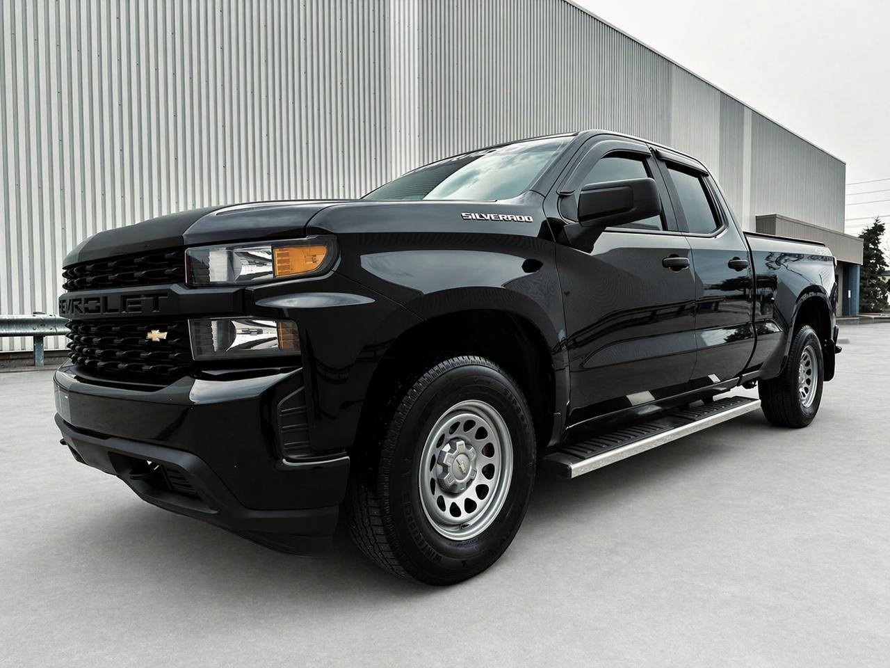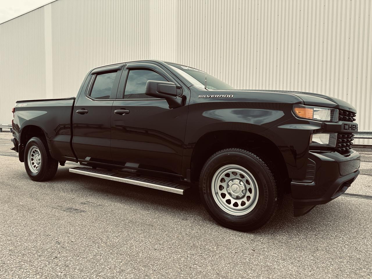 76470 Kms, Rare Low Kms Custom Triple Black New Look, 2019 Chevrolet Silverado 1500 Quad Cab 4WD powered by a reliable V6 engine, exceptionally clean and fully reconditioned by our dealership, this truck shows true pride of ownership and is not your average work unit, Single Mature Ownership According to Carfax History Report (Verified), finished in a stunning triple black appearance that gives it a bold and aggressive stance, drives tight and smooth exactly as it should, well equipped with highlighted options including: towing package, LED lighting, backup camera on touchscreen display, keyless entry, spray-in bed liner, soft tonneau cover, Rough Country seat covers, chrome running boards, tinted windows, rain visors, and more, pickup that is ready for work or everyday driving, this is a hard-to-find as a low kilometre Triple black Silverado.