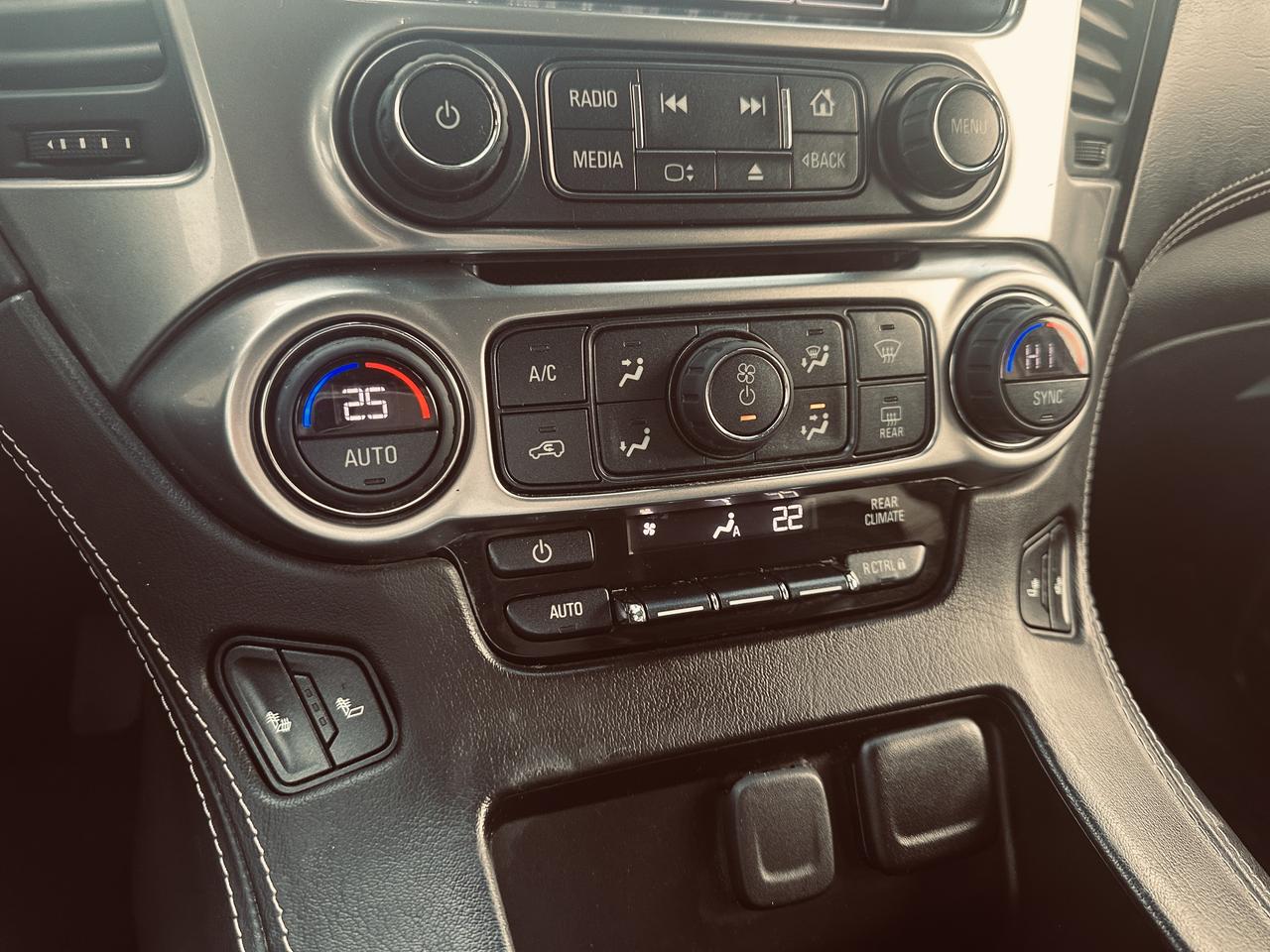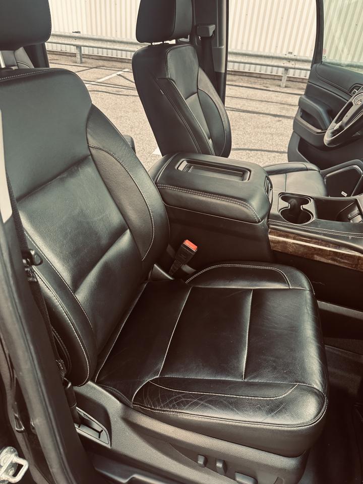 Loaded with premium options and features: full black leather interior with front and second row captain chairs (7 passenger configuration), power driver and passenger seats, heated front seats, touchscreen infotainment system with backup camera, Bluetooth connectivity, premium sound system, tri zone automatic climate control, remote start, keyless entry, running boards, roof rails, and tow haul mode.